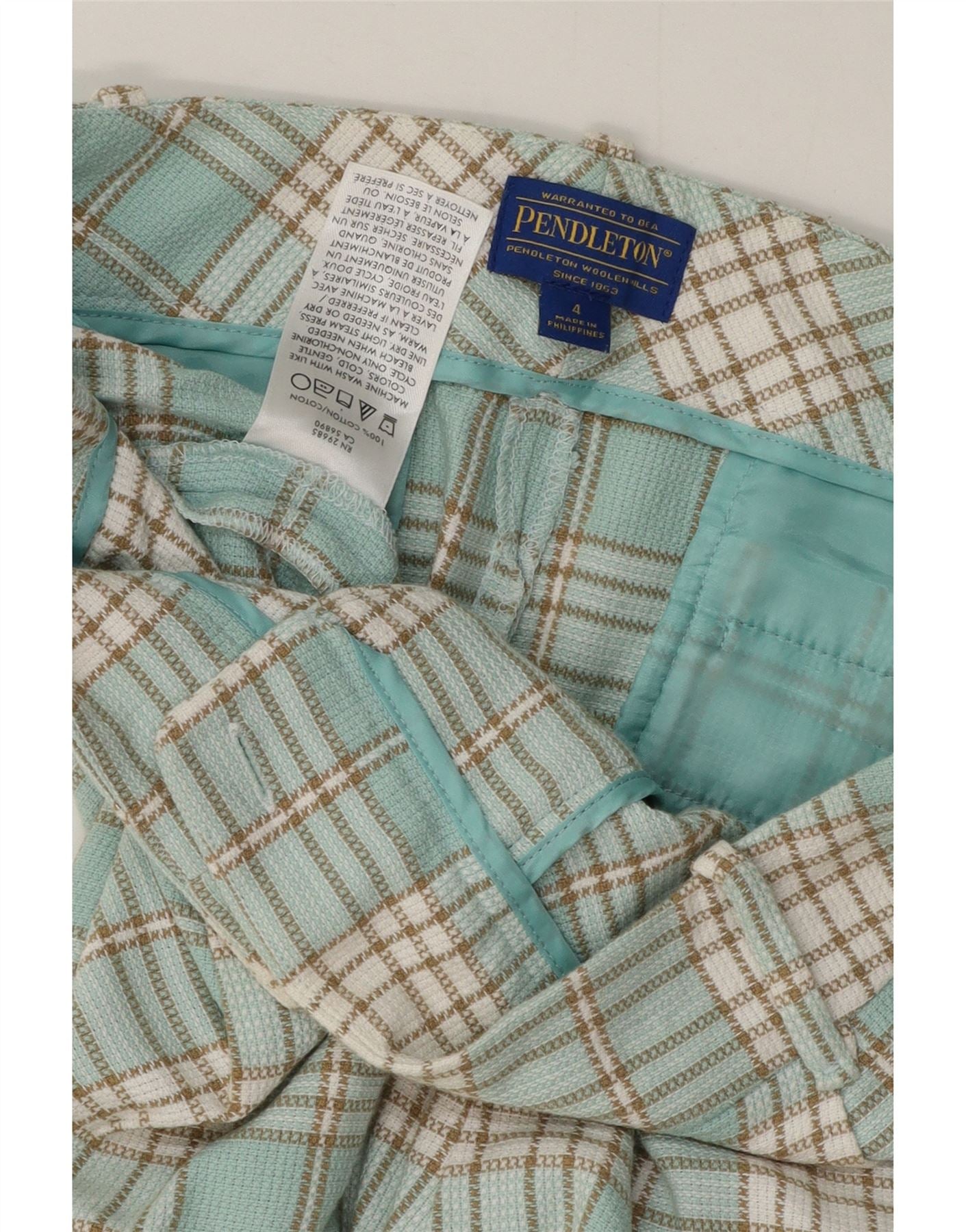 Calça chino feminina PENDLETON US 4 pequena W30 L28 xadrez turquesa