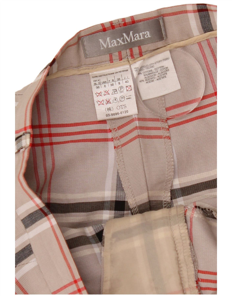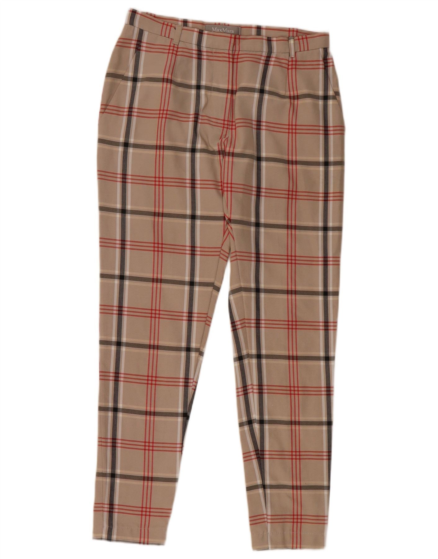 Calça Chino Feminina Slim MAX MARA Reino Unido 8 Pequeno W28 L27 Algodão Xadrez Bege