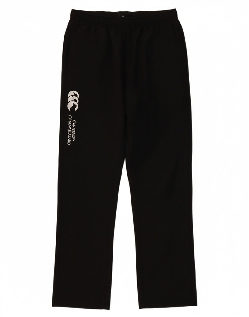 - Descrição da IA: Estas calças de treino masculinas Canterbury são confeccionadas em tecido preto. O ajuste regular garante conforto e facilidade de movimento. Uma cintura elástica com fecho de cordão proporciona um ajuste ajustável. Estas calças esportivas possuem bolsos práticos e são ideais para rugby ou roupas esportivas em geral. O design é simples e funcional.