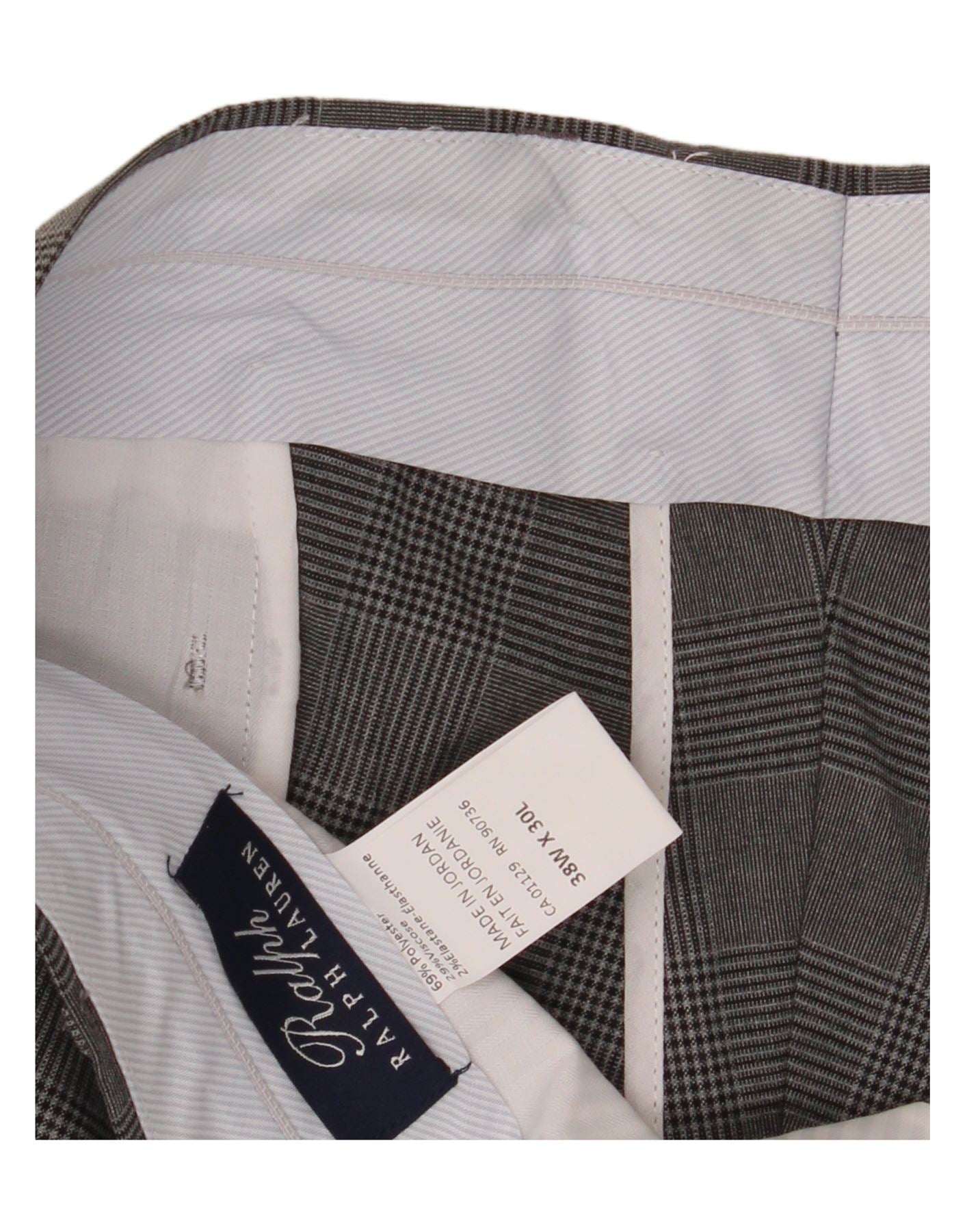 Calça de terno slim masculina RALPH LAUREN W38 L30 poliéster xadrez cinza