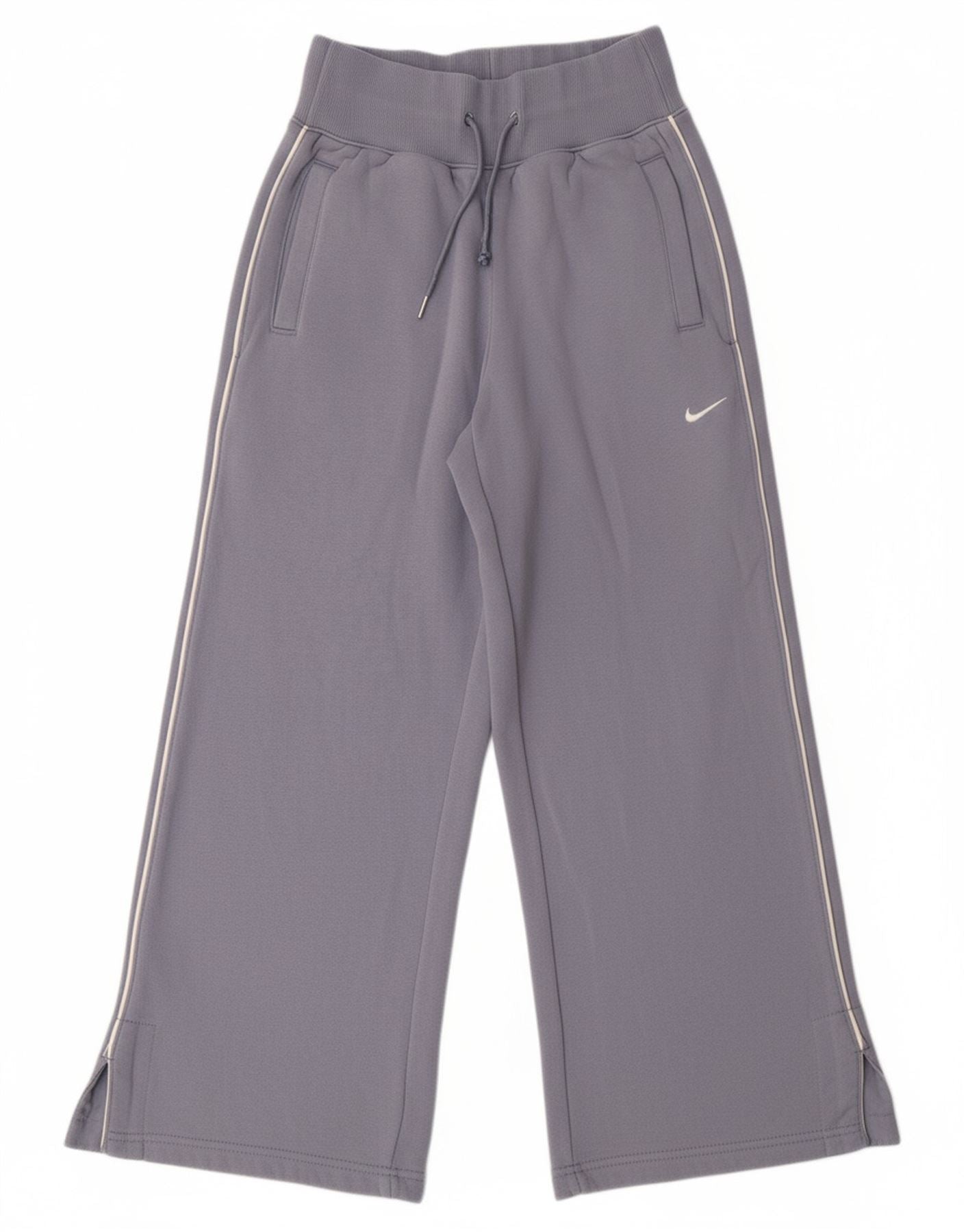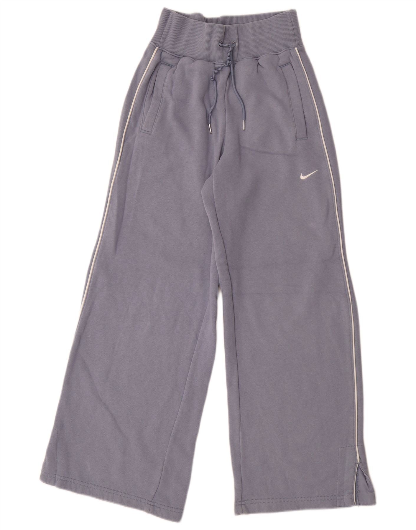 - Descrição da IA: As calças esportivas femininas da Nike são feitas de um tecido azul suave misturado com um interior de lã aconchegante. A mistura de 80% algodão e 20% poliéster garante conforto. Eles oferecem um ajuste relaxado e de pernas largas para movimentos irrestritos. Uma cintura elástica com cordão proporciona uma sensação ajustável e segura. Bolsos práticos estão incluídos. Um detalhe sutil do logotipo da Nike adiciona um toque esportivo exclusivo. Estas calças desportivas são ideais para conforto e estilo.