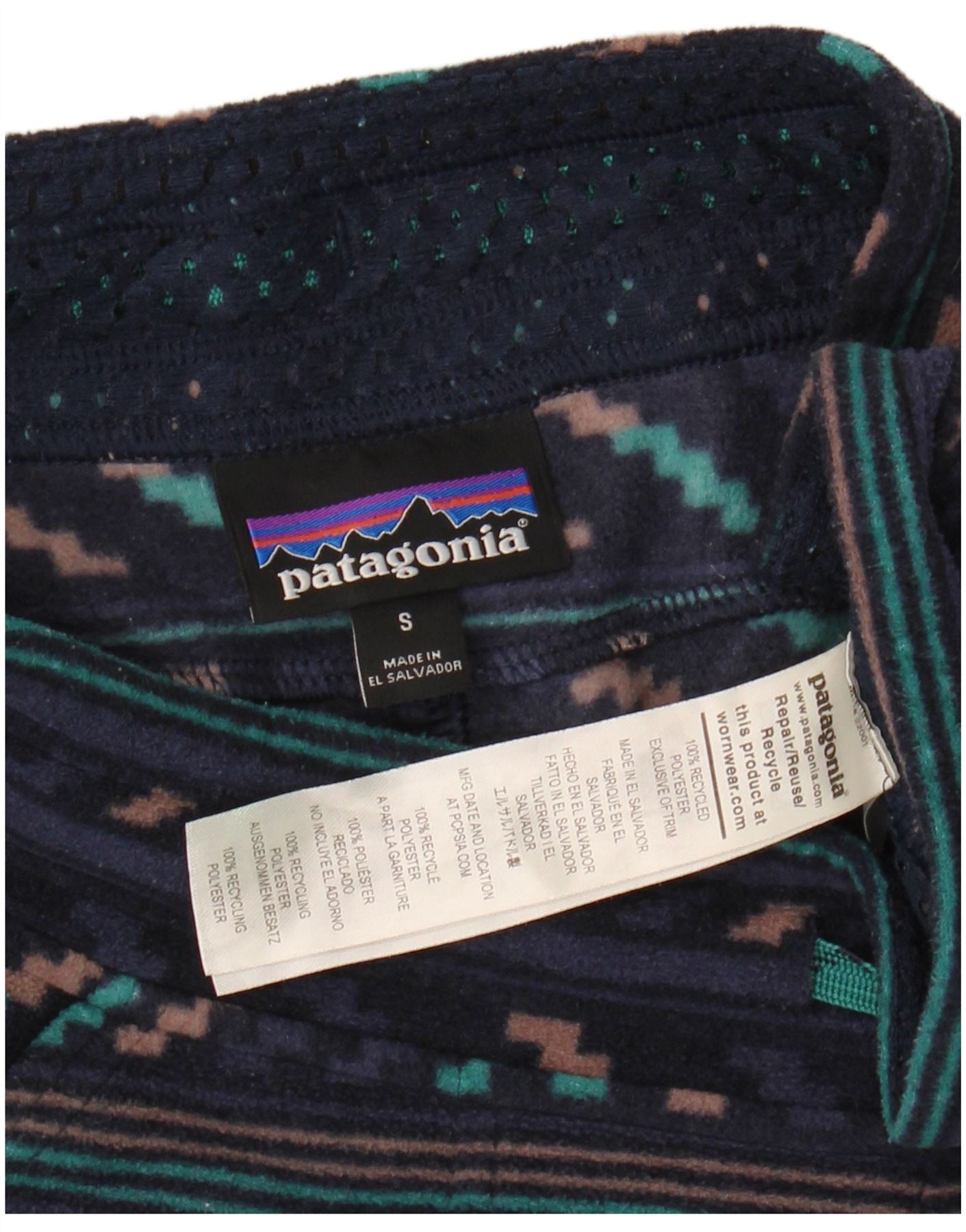 - Descrição da IA: Esta calça casual feminina Patagonia é confeccionada em lã macia de poliéster azul marinho. Eles apresentam um ajuste relaxado e uma cintura com cordão elástico para maior conforto. Bolsos práticos acrescentam funcionalidade. Um padrão geométrico abstrato dá um estilo tribal. Um sutil destaque do logotipo completa o design. O tecido leve garante facilidade de uso.