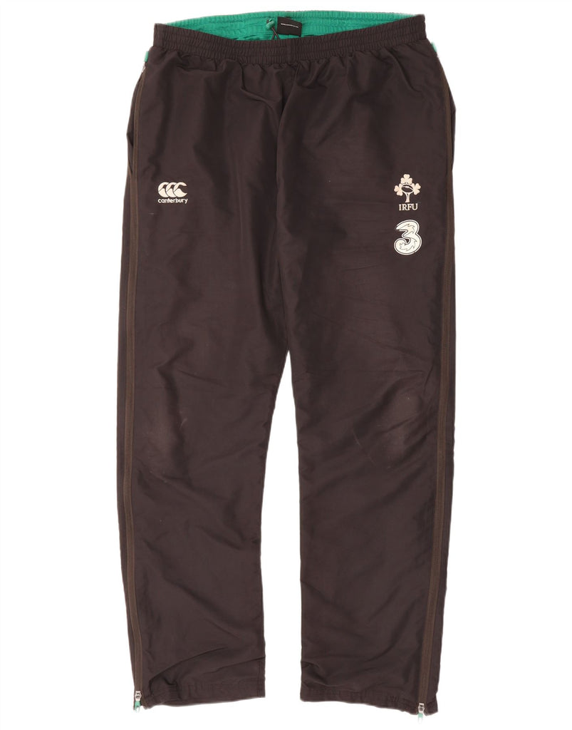 - Descrição da IA: Estas calças de treino masculinas Canterbury são feitas de um tecido durável, oferecendo proteção à prova de vento. O design pull-on apresenta uma cintura elástica para um ajuste confortável e seguro. Um ajuste regular garante facilidade de movimento, ideal para uso ativo. Bolsos práticos proporcionam armazenamento, enquanto zíperes nos tornozelos permitem ventilação ajustável e fácil troca. A marca sutil IRFU completa o design atlético.