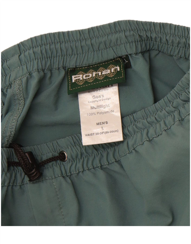 - Descrição da IA: Esta calça corta-vento masculina Rohan é confeccionada em tecido leve 100% poliamida. A cor verde oferece uma estética versátil e externa. Eles apresentam um ajuste relaxado e solto para máximo conforto e liberdade de movimento. Uma cintura com cordão ajustável garante um ajuste seguro e personalizado. Vários bolsos com detalhes em zíper proporcionam armazenamento prático. Estas calças são ideais para desportos e atividades ao ar livre.