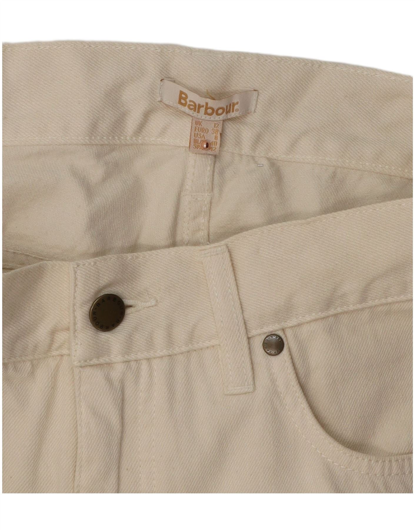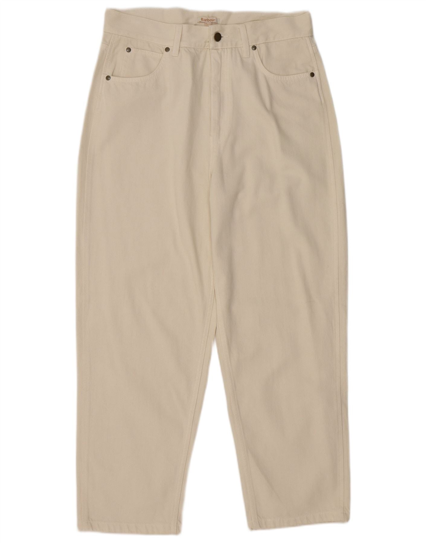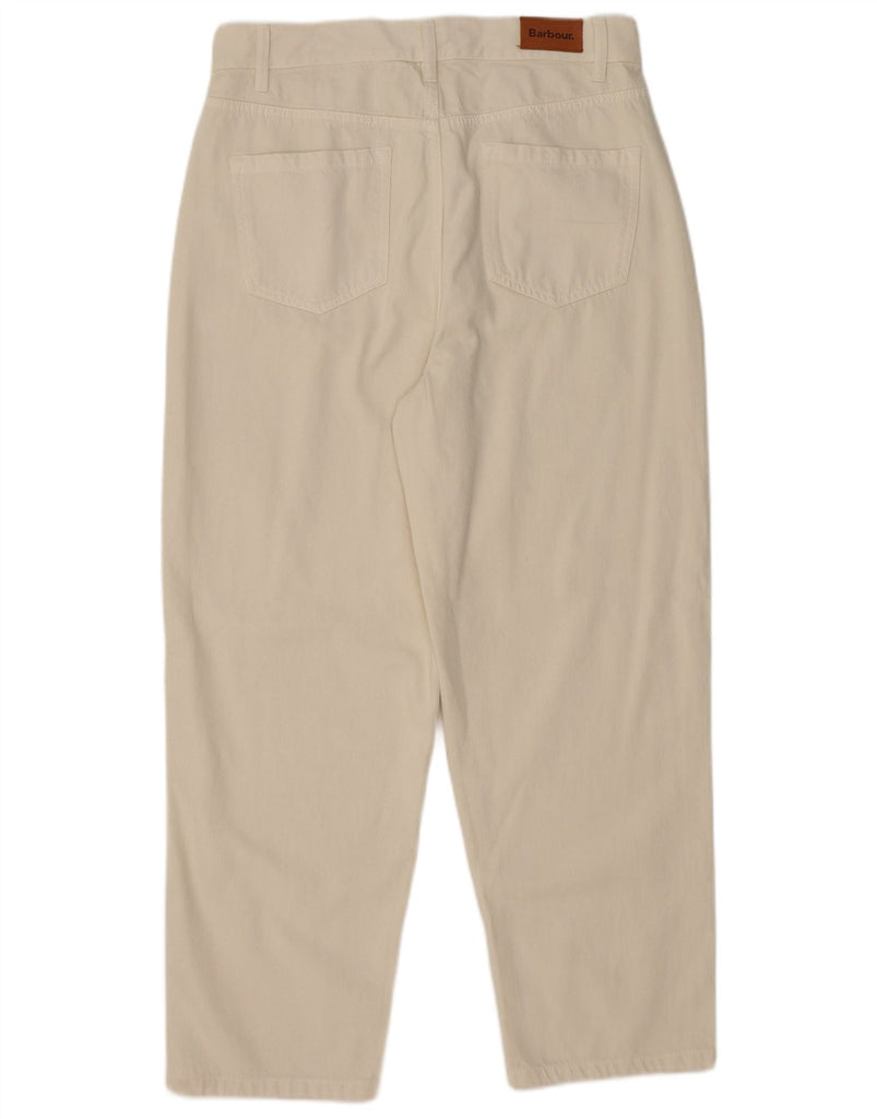 Calça feminina cortada de cintura alta BARBOUR Reino Unido 12 médio W30 L26 branco