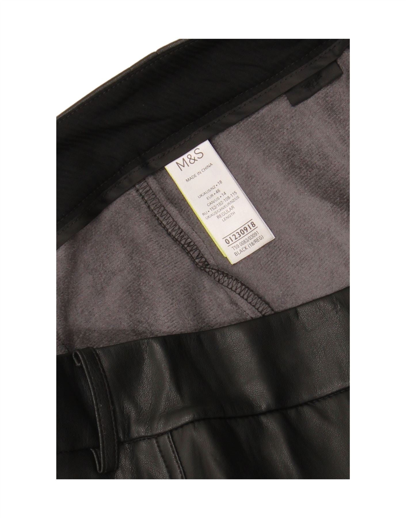Calça feminina de couro sintético MARKS & SPENCER UK 18 XL W37 L27 preta