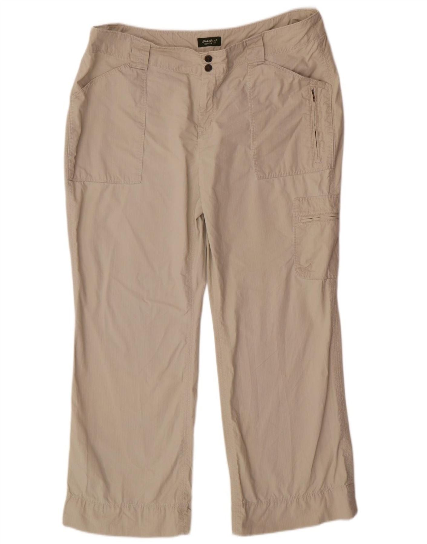 Calça feminina EDDIE BAUER reta cortada EUA 16 2XL W38 L27 bege