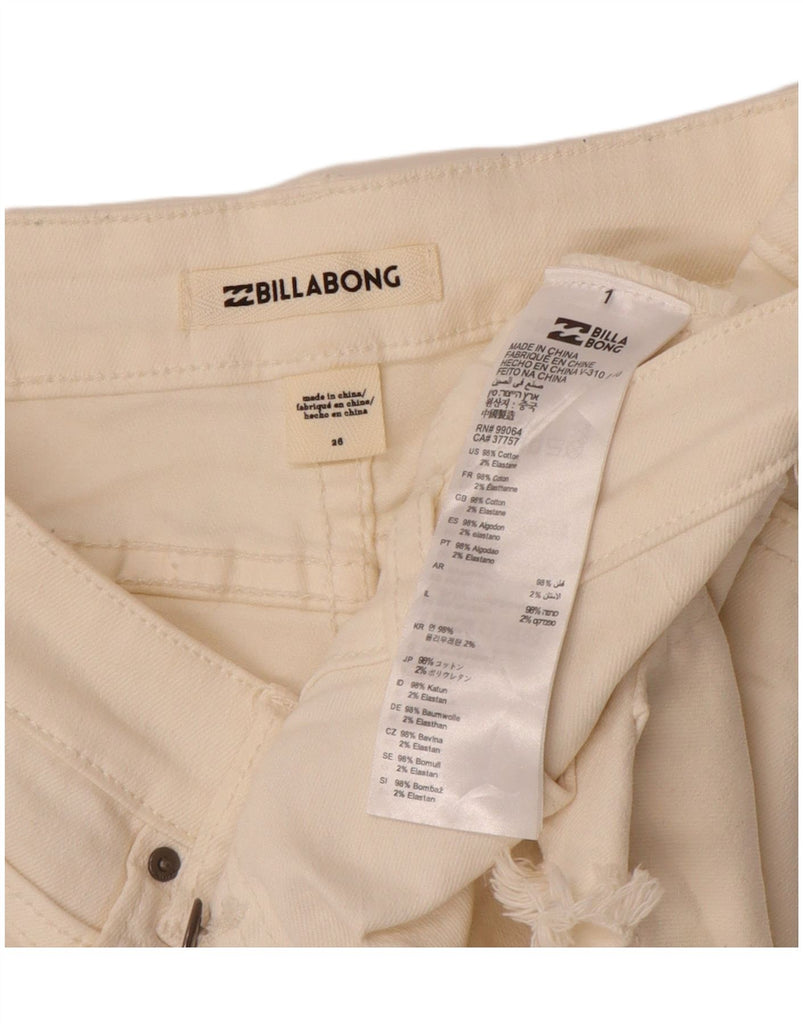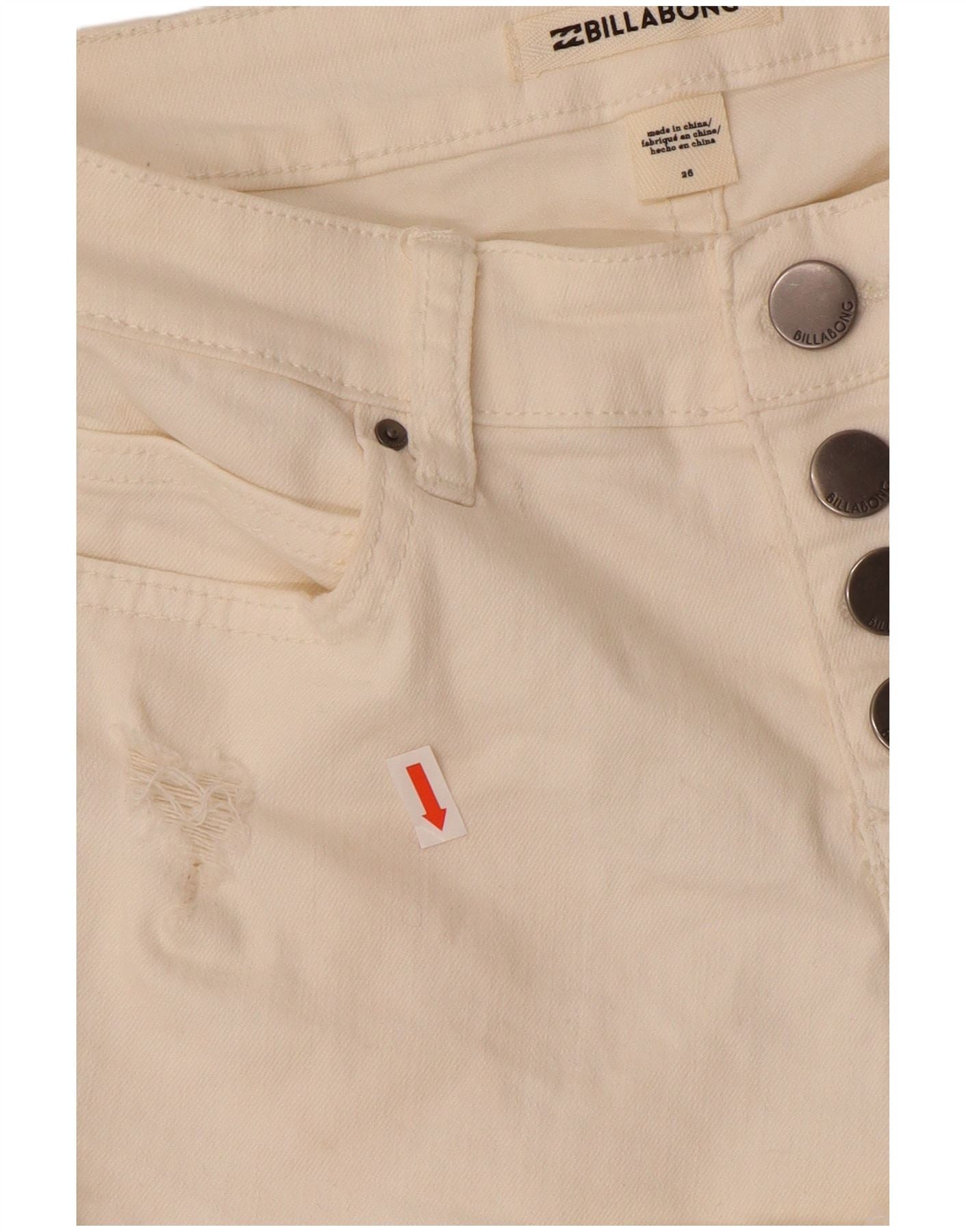 Calça feminina jeans desgastada BILLABONG W26 pequena algodão branco