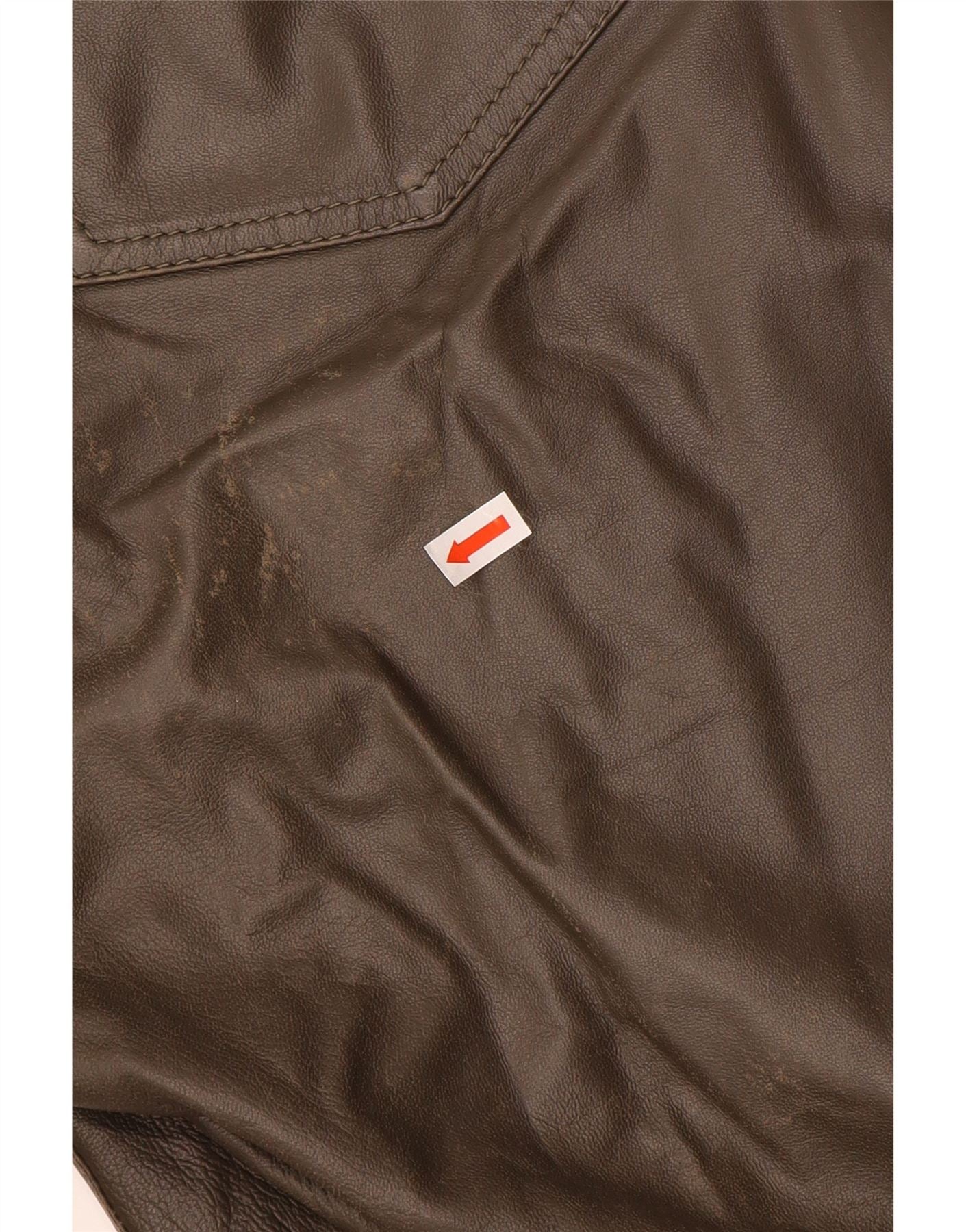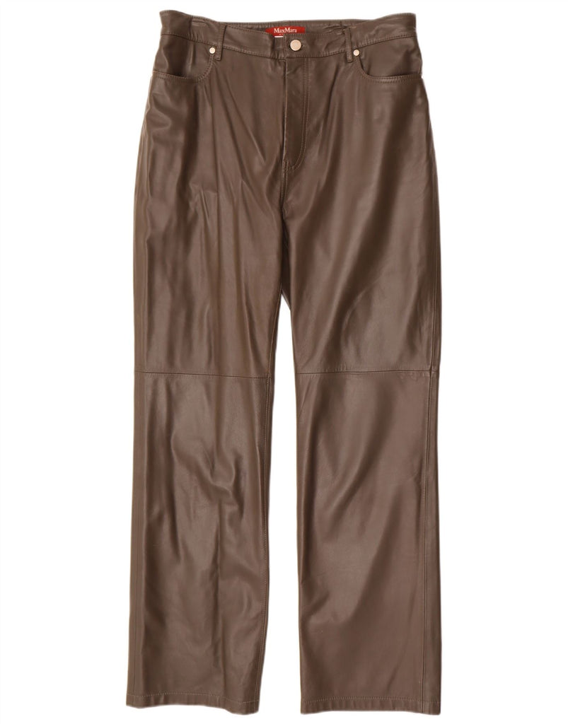 Calça feminina reta sintética MAX MARA Reino Unido 14 grande W34 L31 couro marrom
