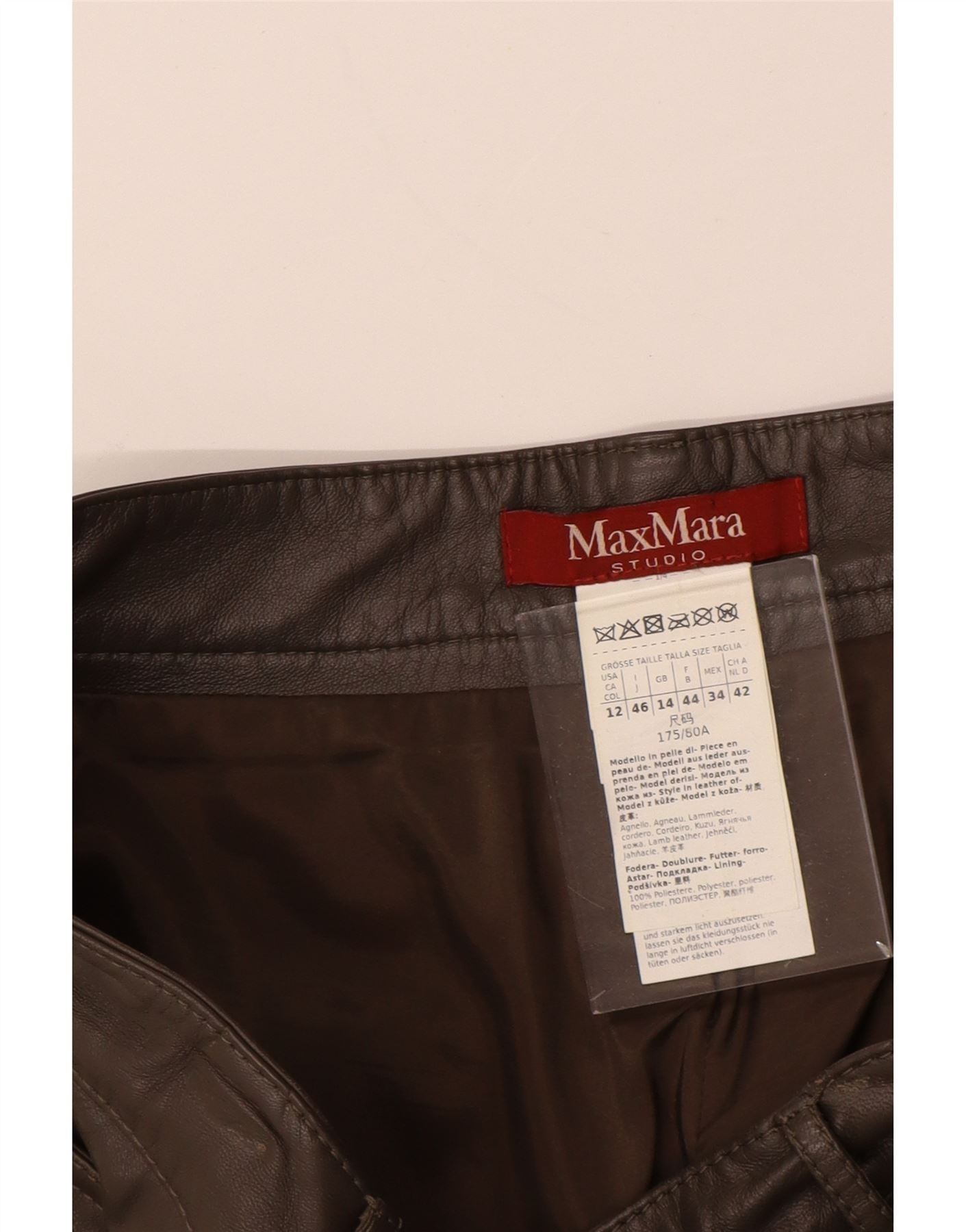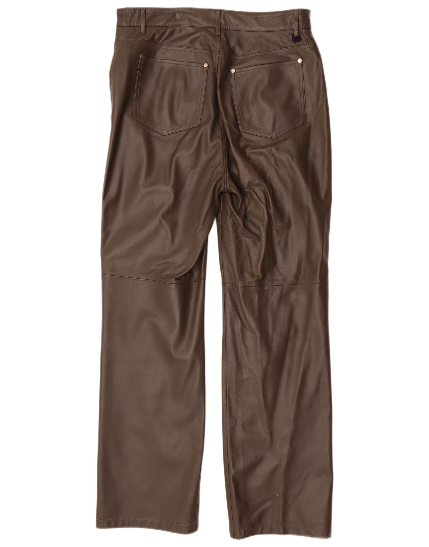 - Descrição da IA: Estas calças femininas Max Mara são confeccionadas em luxuoso couro de cordeiro marrom. Eles apresentam uma perna reta e um ajuste regular para conforto clássico. Um fecho de correr garante uma frente lisa. Bolsos práticos estão incluídos no design.