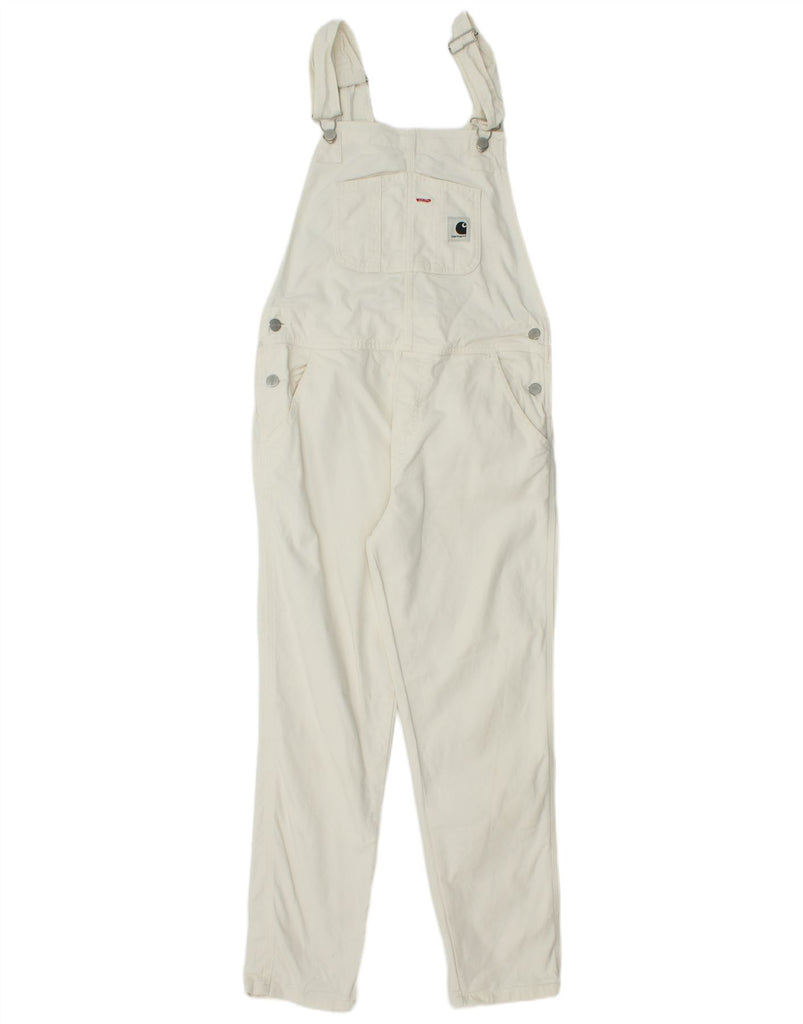 Calça jardineira feminina CARHARTT UK 14 médio W30 L27 algodão branco