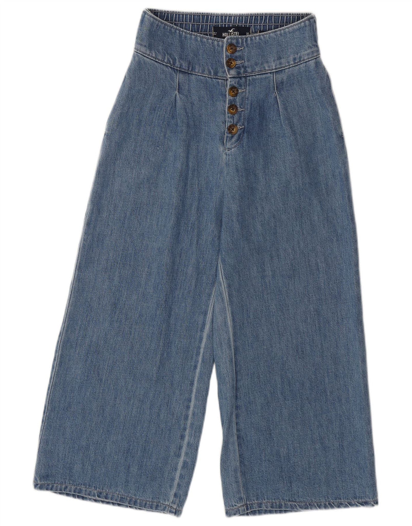 Calça jeans feminina HOLLISTER com cintura alta e perna larga XS W24 L21 algodão azul