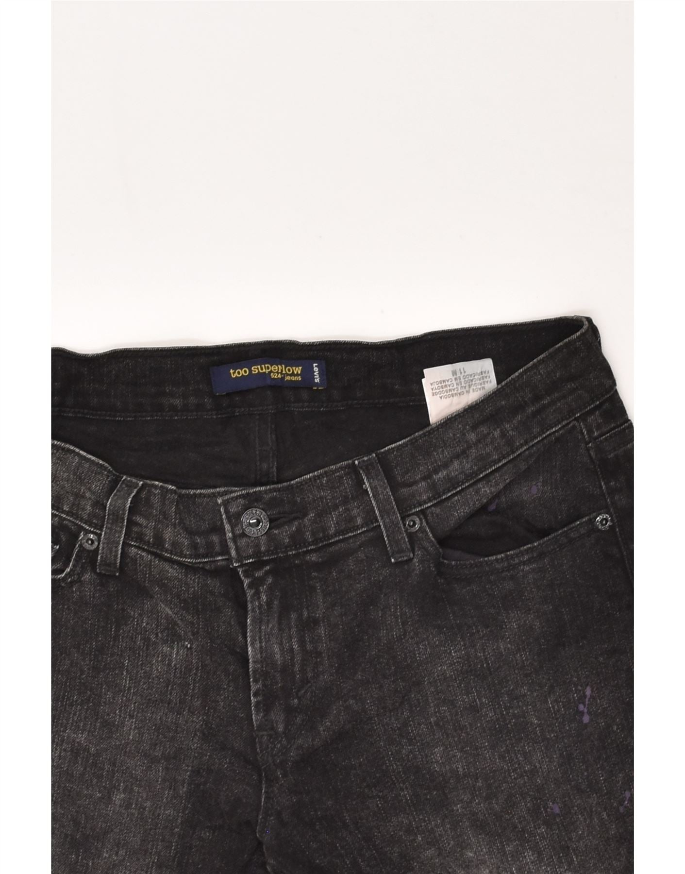Calça jeans feminina LEVI'S 524 Super Low Slim UK 11 grande W34 L33 algodão preto