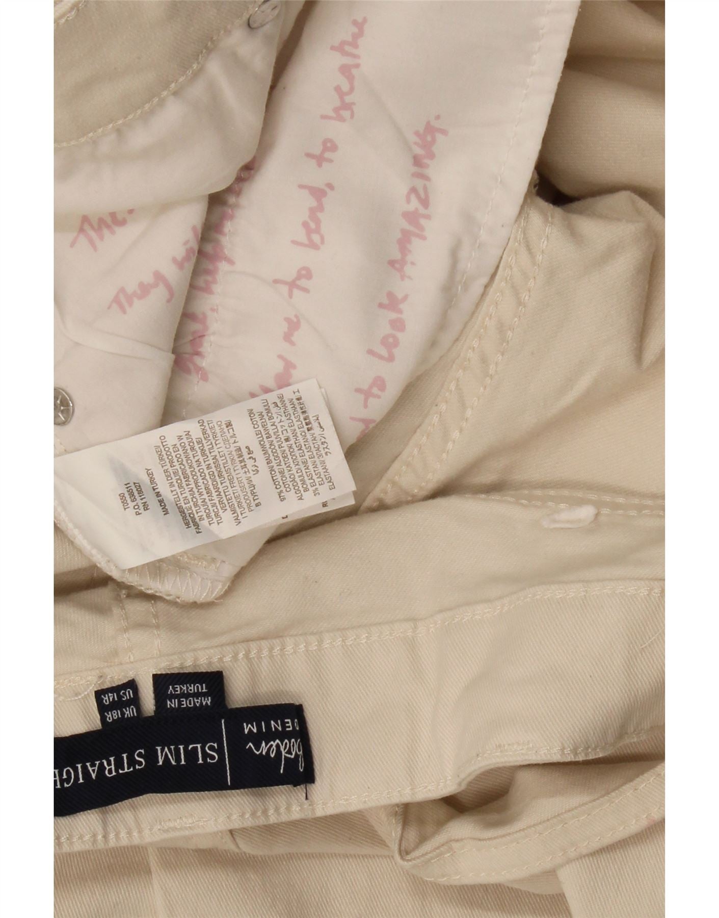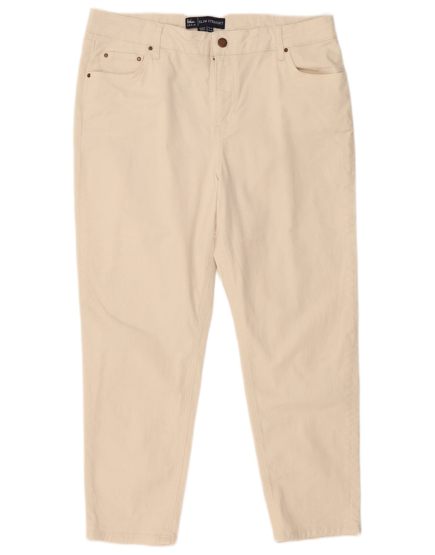 Calça jeans feminina slim reta BODEN Reino Unido 18 XL W38 L27 algodão branco