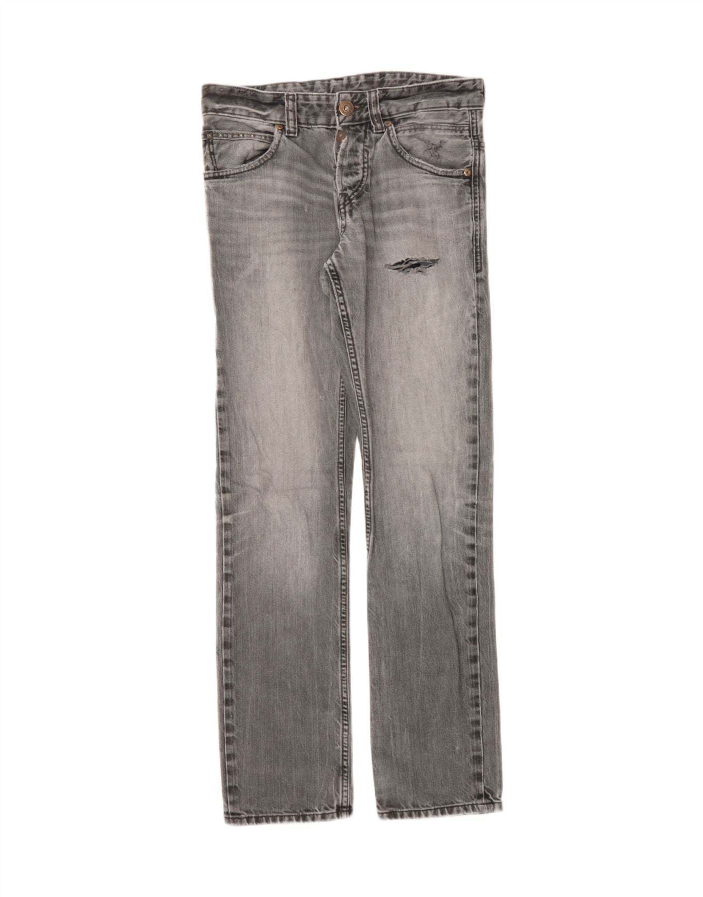 Calça jeans feminina TOM TAILOR desgastada slim reta W28 L32 algodão cinza