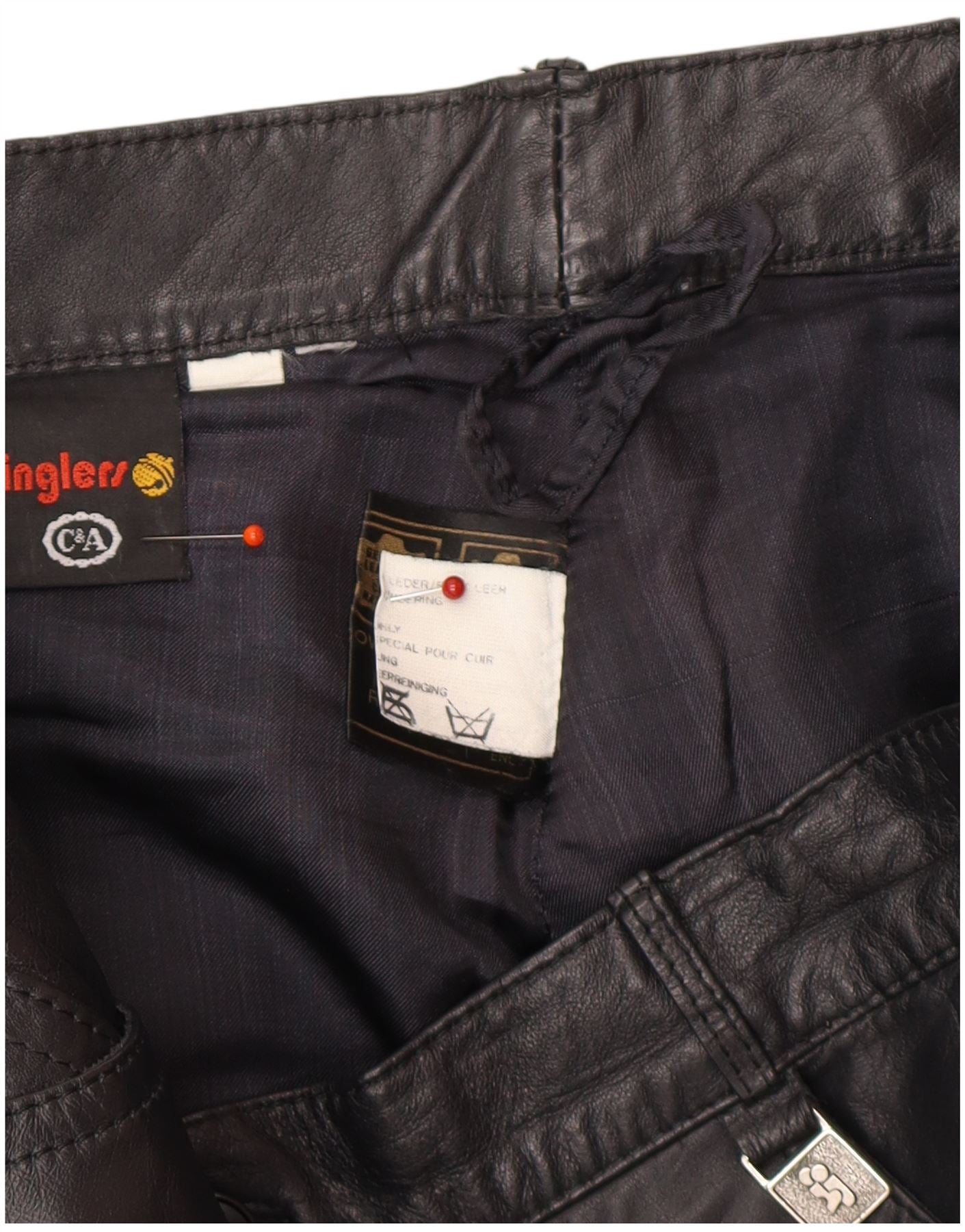 - Descrição da IA: Esta calça masculina de couro C&A é confeccionada em couro preto liso, oferecendo um acabamento elegante e robusto. Eles apresentam um ajuste regular e fecho de botão para uma silhueta clássica. Bolsos com zíper adicionam detalhes práticos e um toque moderno. O estilo motociclista é realçado por elementos de design sutis. Um logotipo discreto fornece um toque exclusivo.