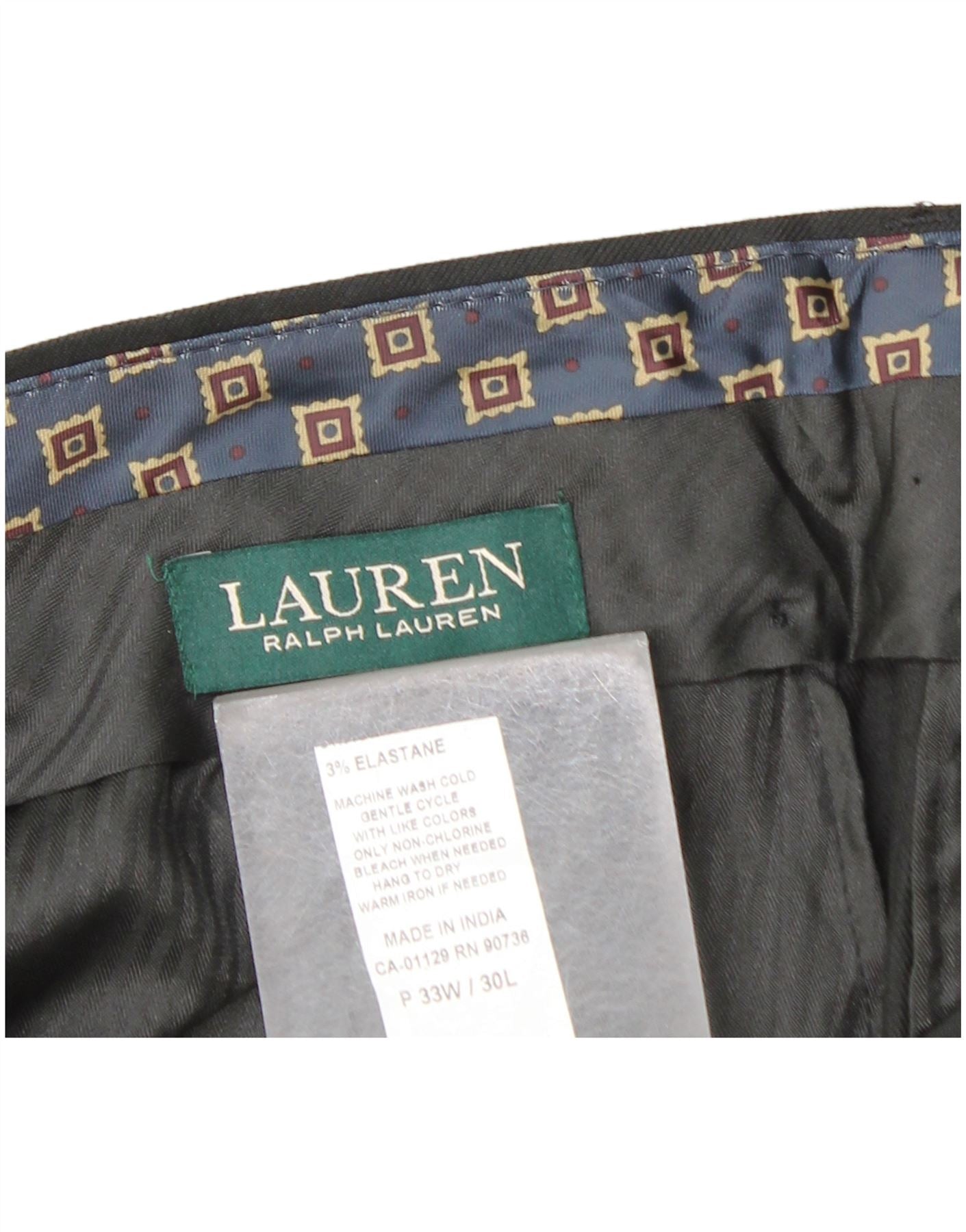 Calça masculina de terno reto RALPH LAUREN W33 L30 poliéster preto