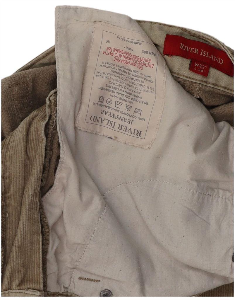 Calça masculina reta de veludo cotelê RIVER ISLAND W32 L34 algodão marrom