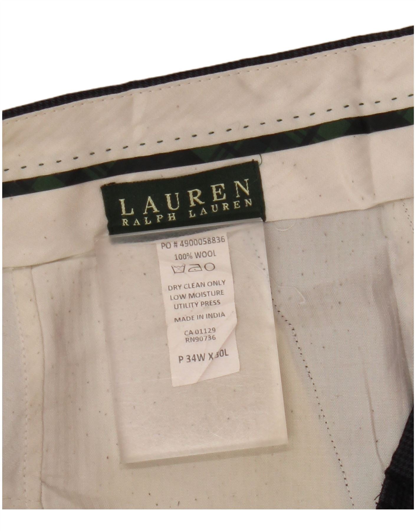 Calça masculina reta RALPH LAUREN W34 L30 azul marinho Houndstooth