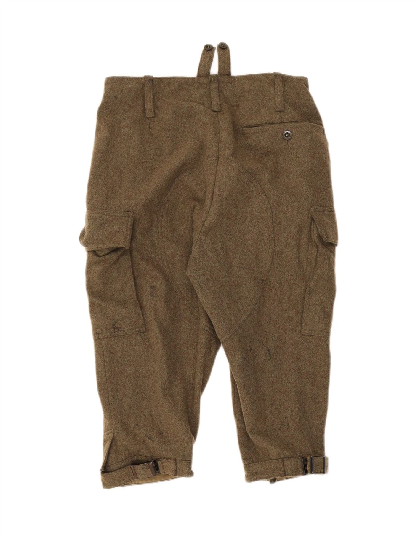 - Descrição da IA: Estas calças cargo masculinas vintage são confeccionadas em tecido cáqui durável. Eles apresentam um ajuste regular e um fecho de botão seguro. Bolsos práticos oferecem utilidade e estilo. O design é finalizado com uma bainha elegante com punhos, dando-lhes um comprimento contemporâneo no estilo Capri. Esta peça inspirada no exército combina apelo robusto com alfaiataria moderna para uso versátil.