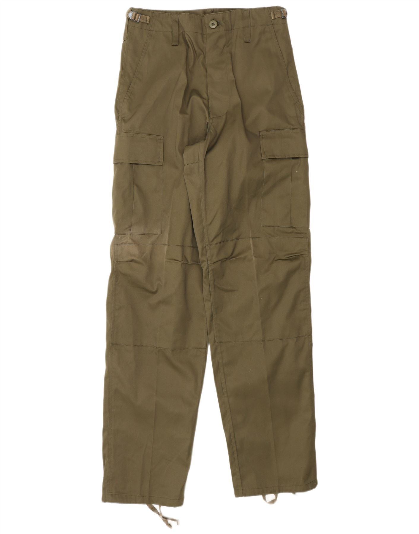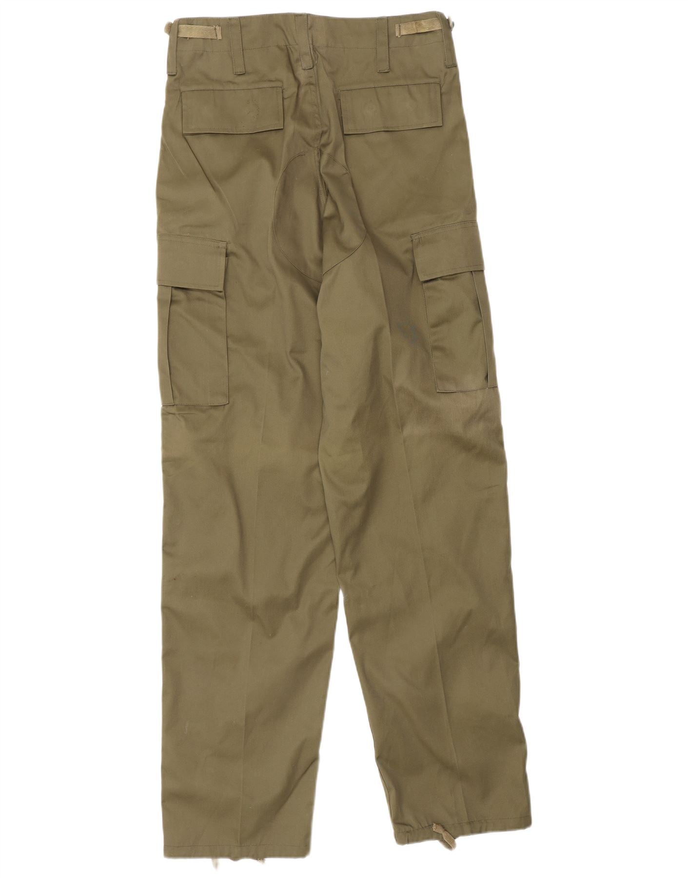 Calças retas de carga masculinas VINTAGE poliéster cáqui pequeno W29 L35