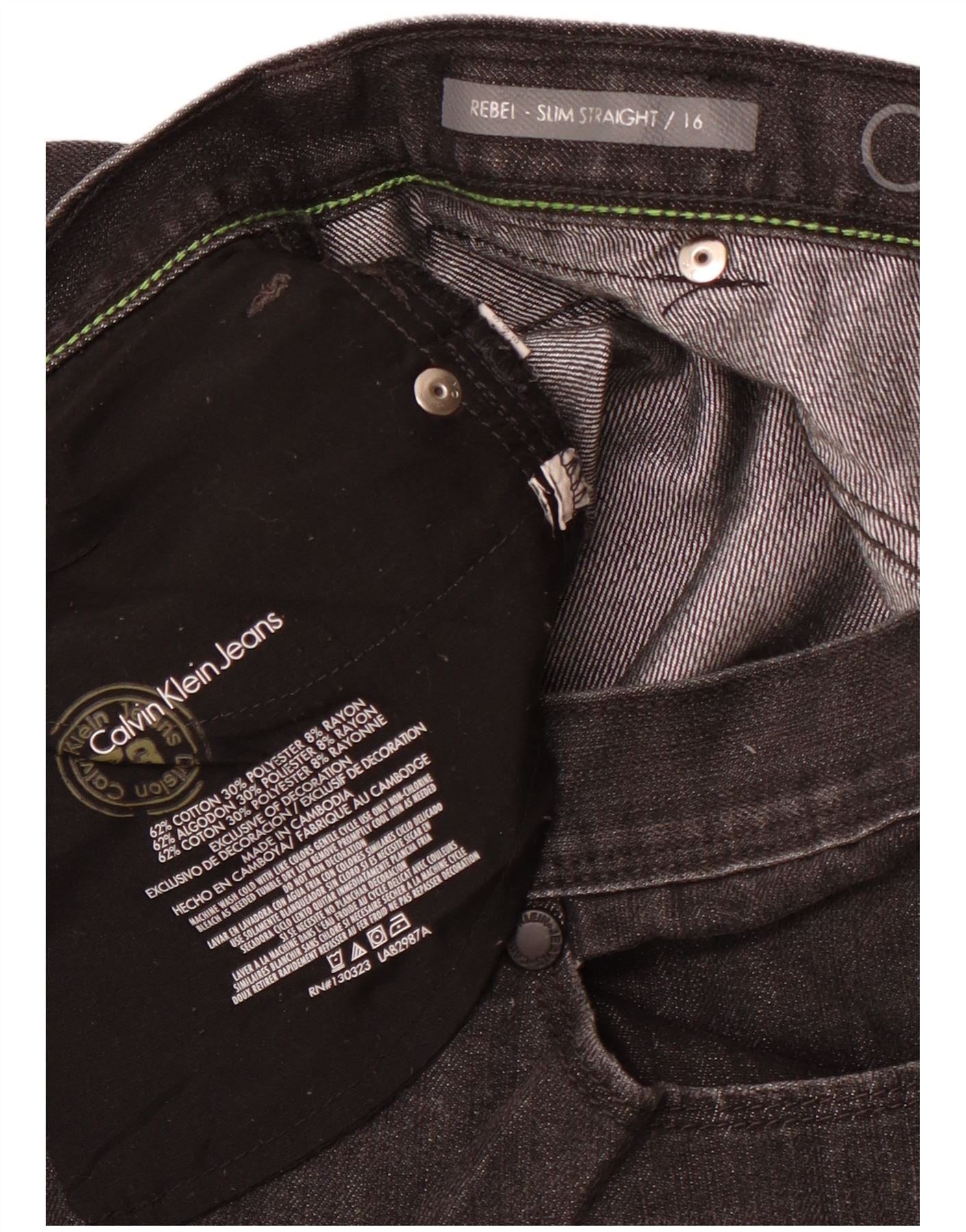 CALVIN KLEIN Meninas Rebel Straight Jeans 15-16 Anos W30 L29 Preto Clássico