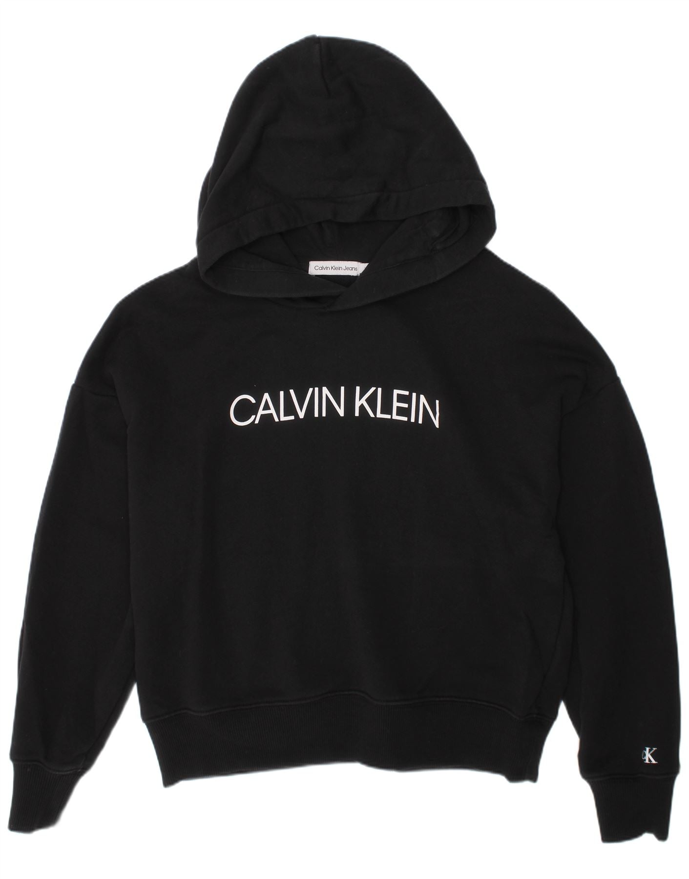 CALVIN KLEIN JEANS Suéter feminino com capuz e estampa gráfica 11-12 anos preto