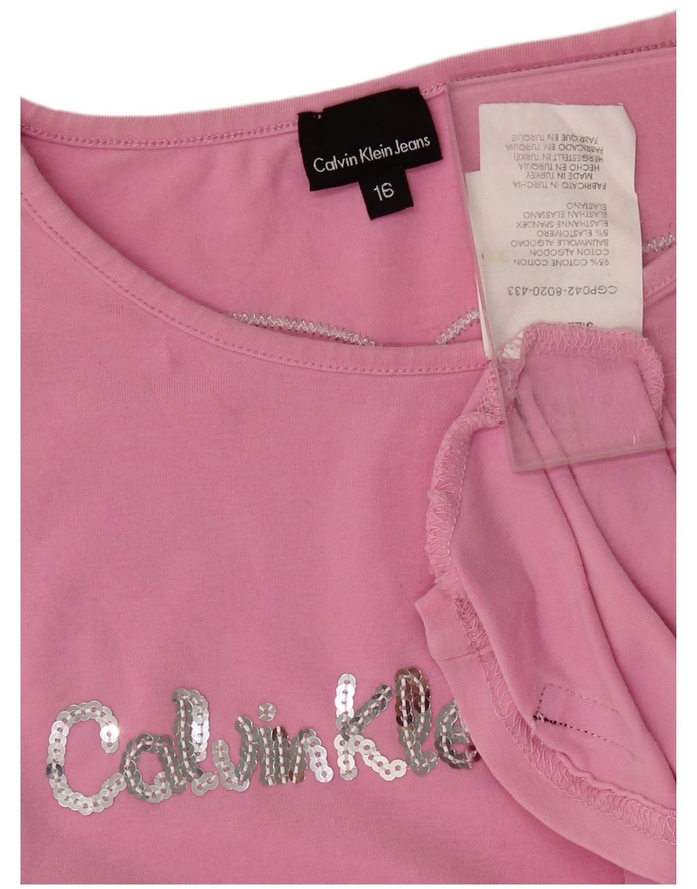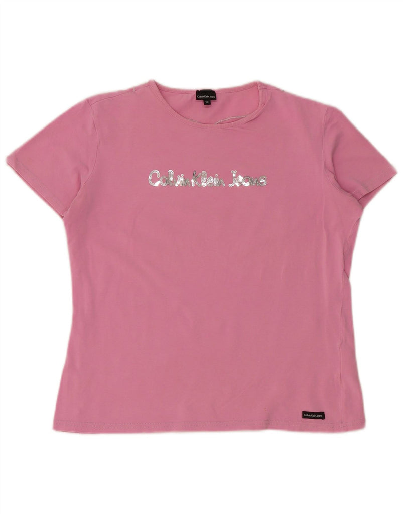 CALVIN KLEIN JEANS Girls Graphic T-Shirt Top 15-16 Years Pink Cotton