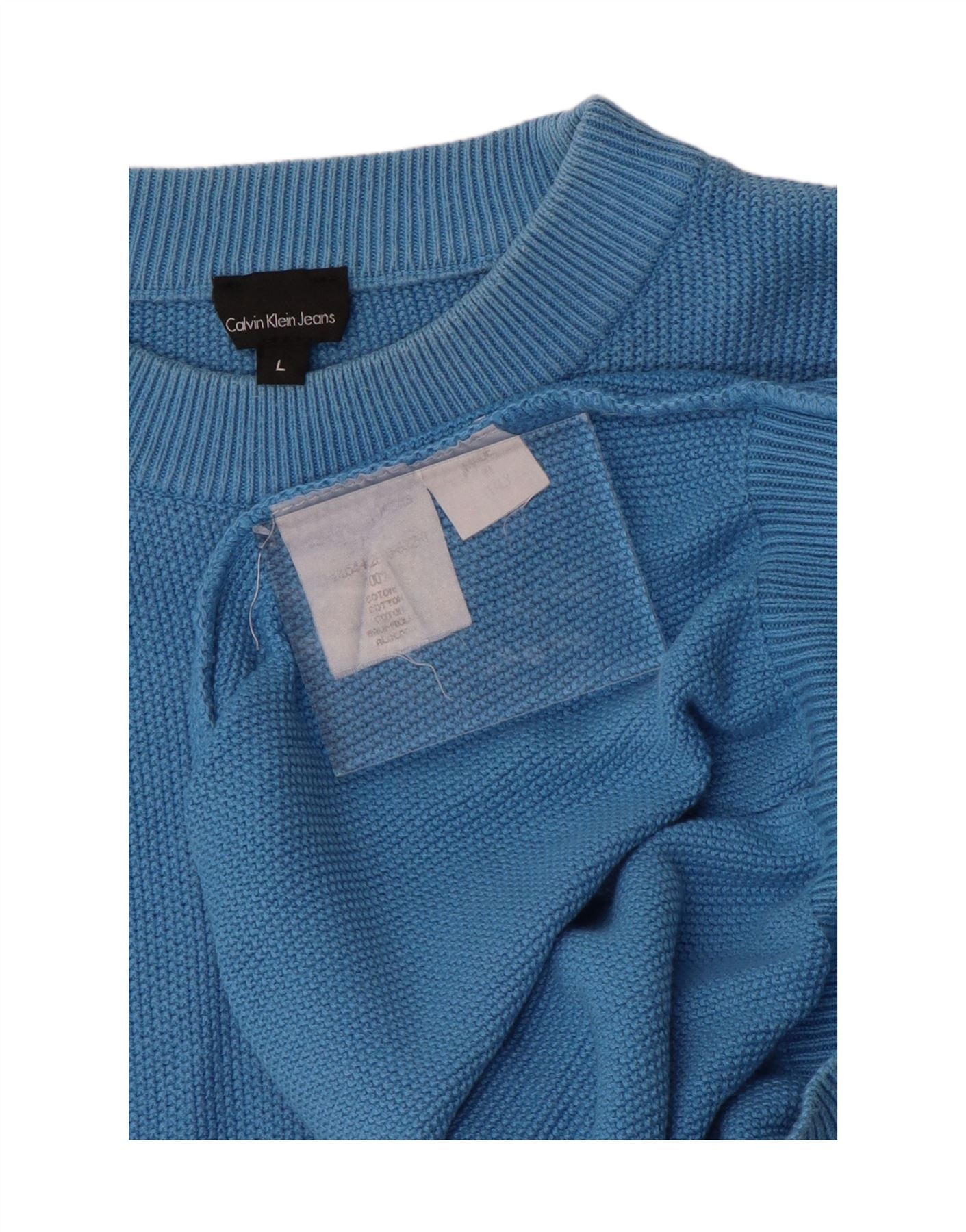 CALVIN KLEIN JEANS Mens Crew Neck Jumper Sweater Large Blue Cotton