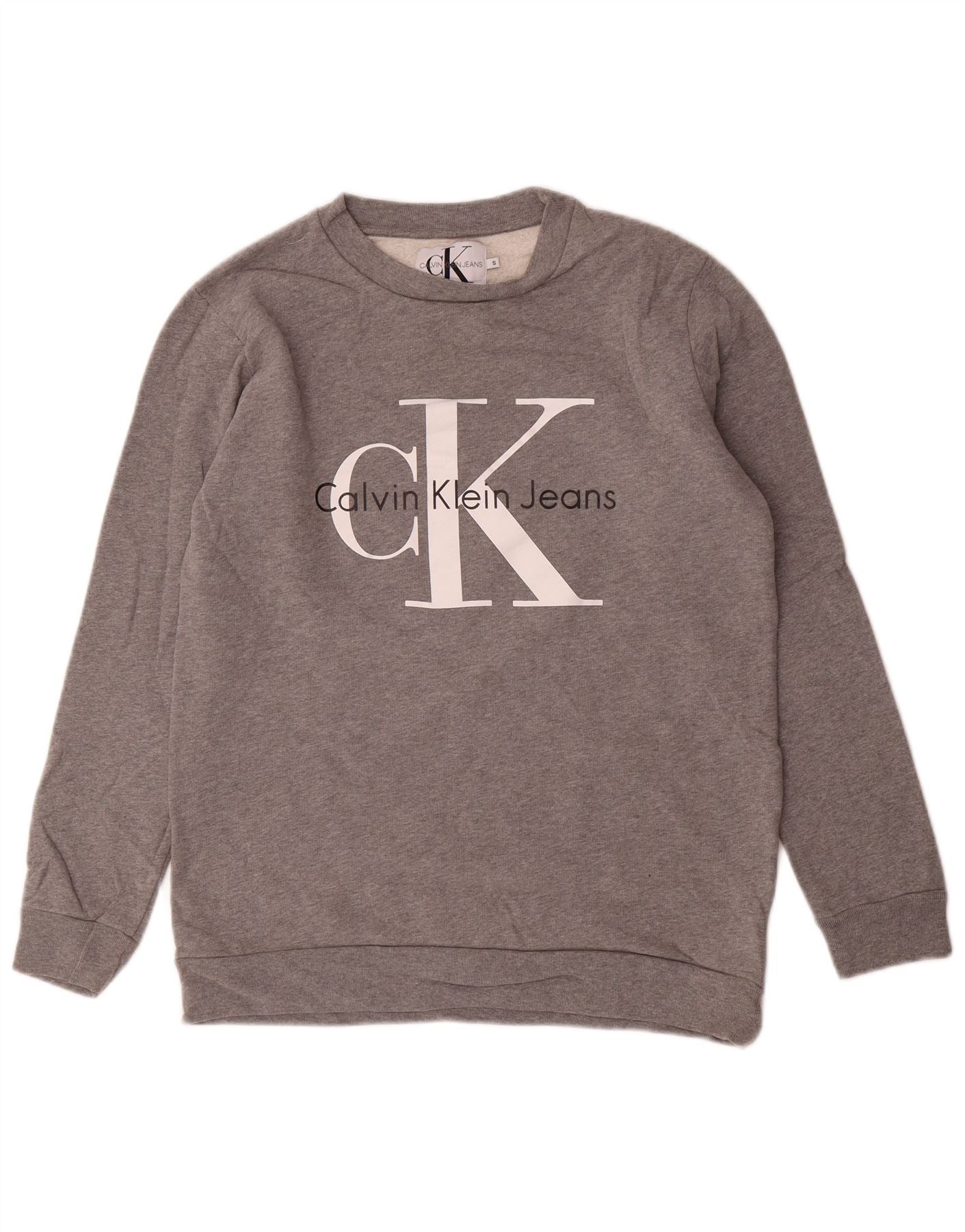 CALVIN KLEIN JEANS Suéter gráfico masculino pequeno algodão cinza