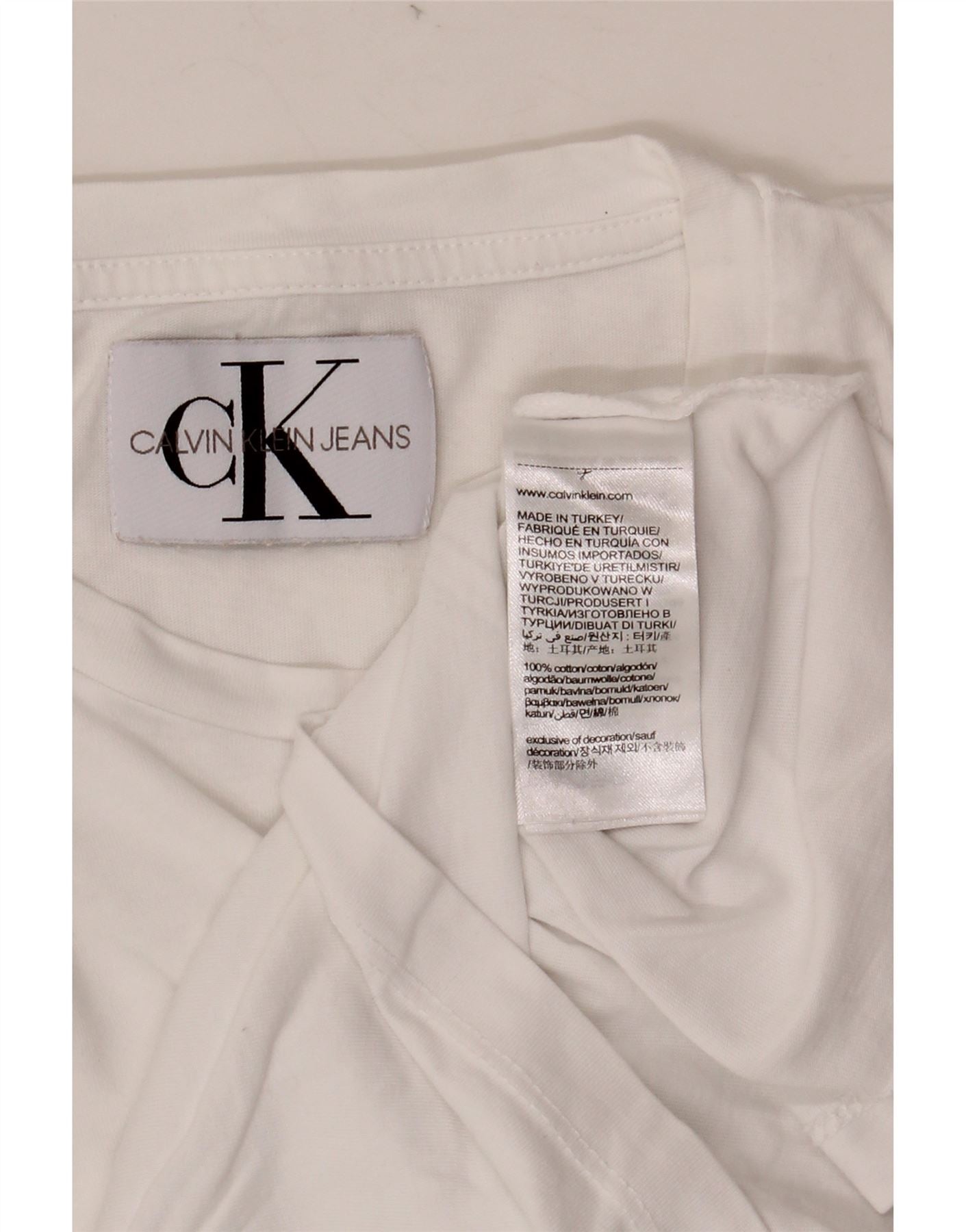 Camiseta masculina CALVIN KLEIN JEANS com estampa gráfica pequena de algodão branco