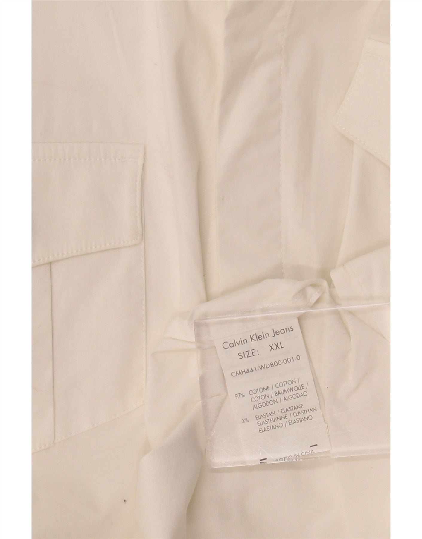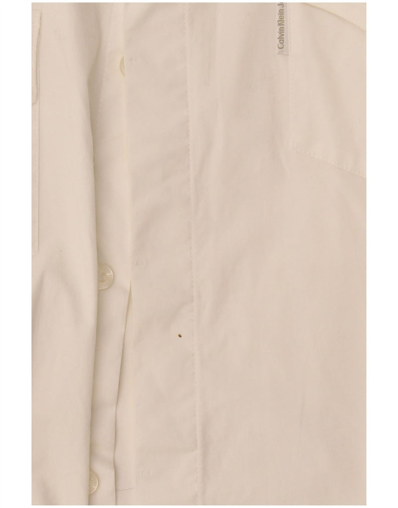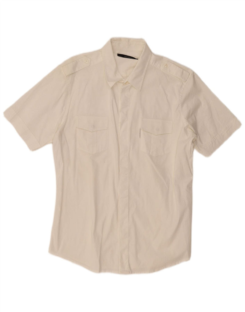 CALVIN KLEIN JEANS Mens Military Short Sleeve Shirt 2XL White Cotton