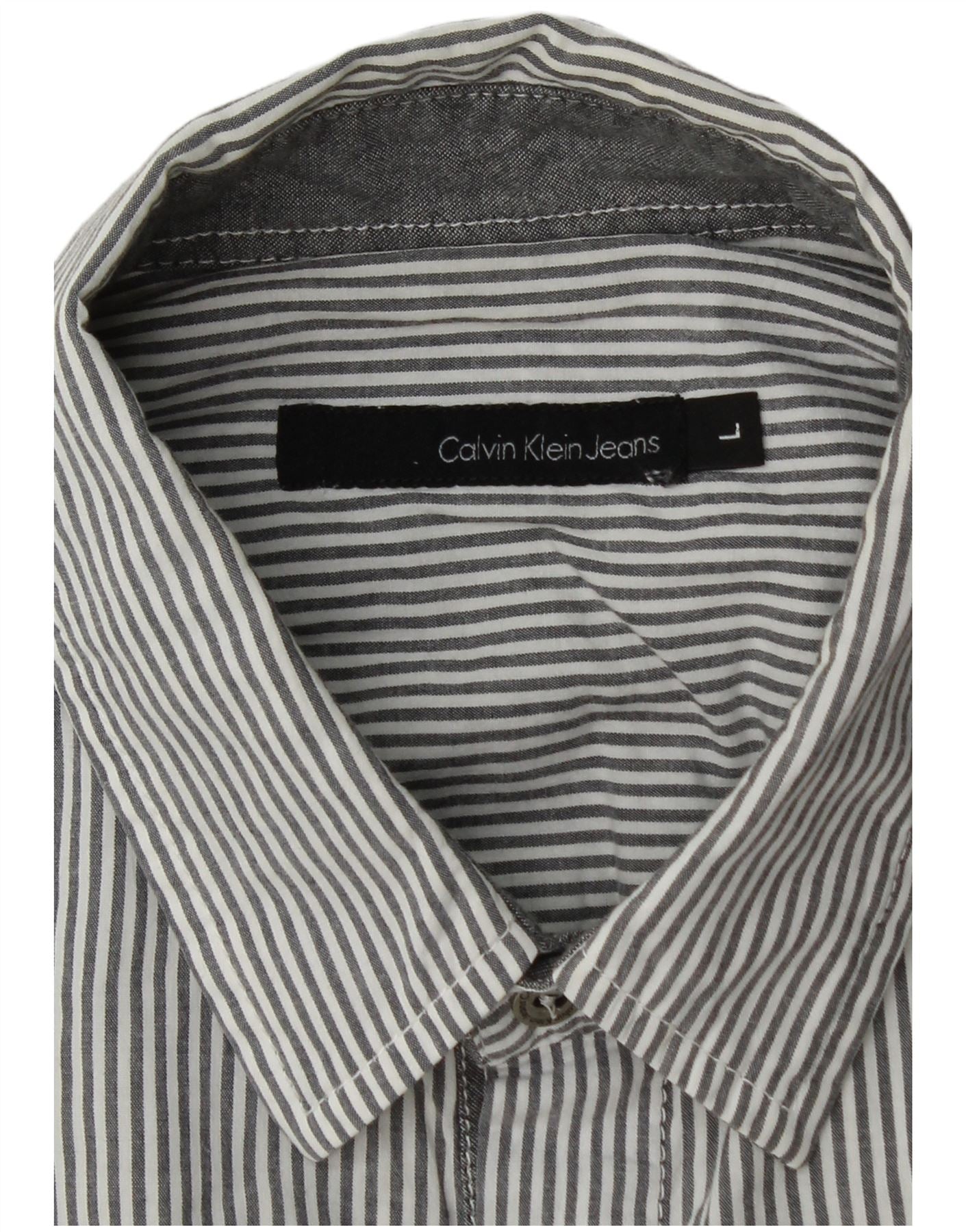 CALVIN KLEIN JEANS Camisa masculina de manga curta grande listrada cinza