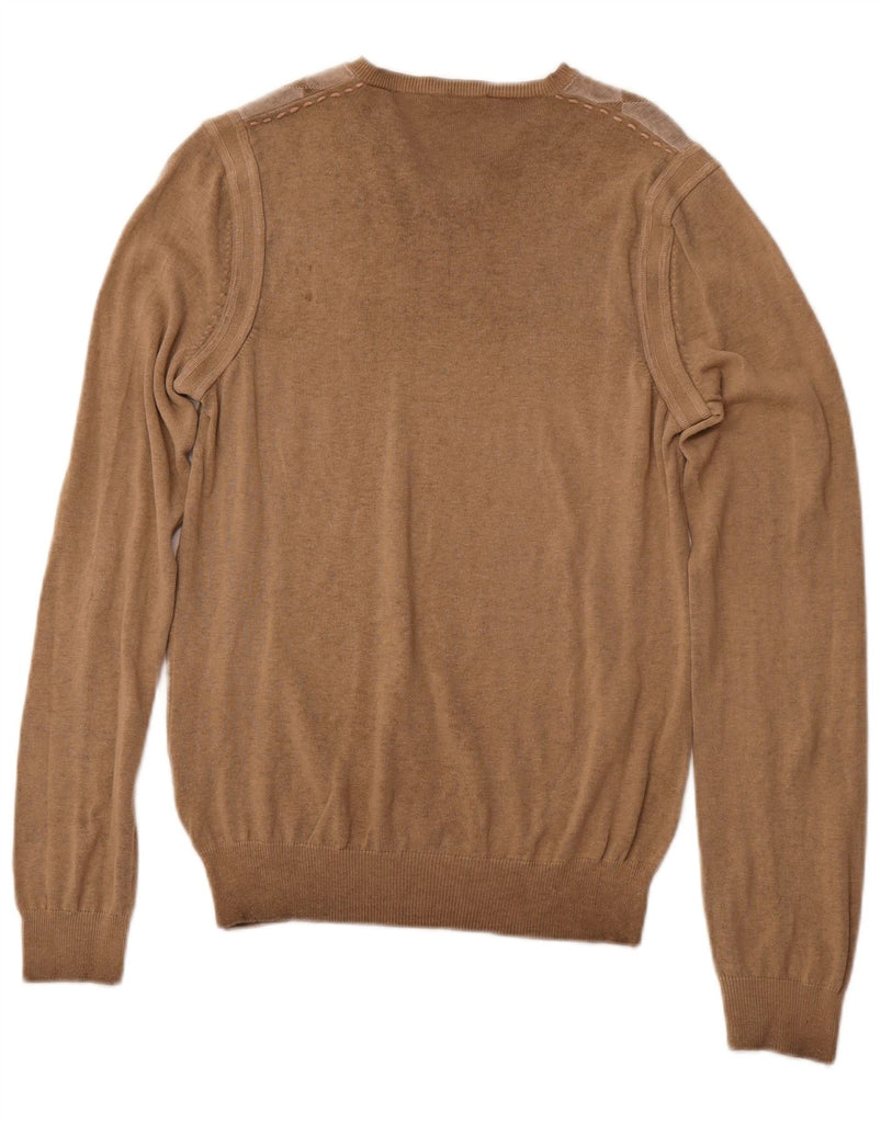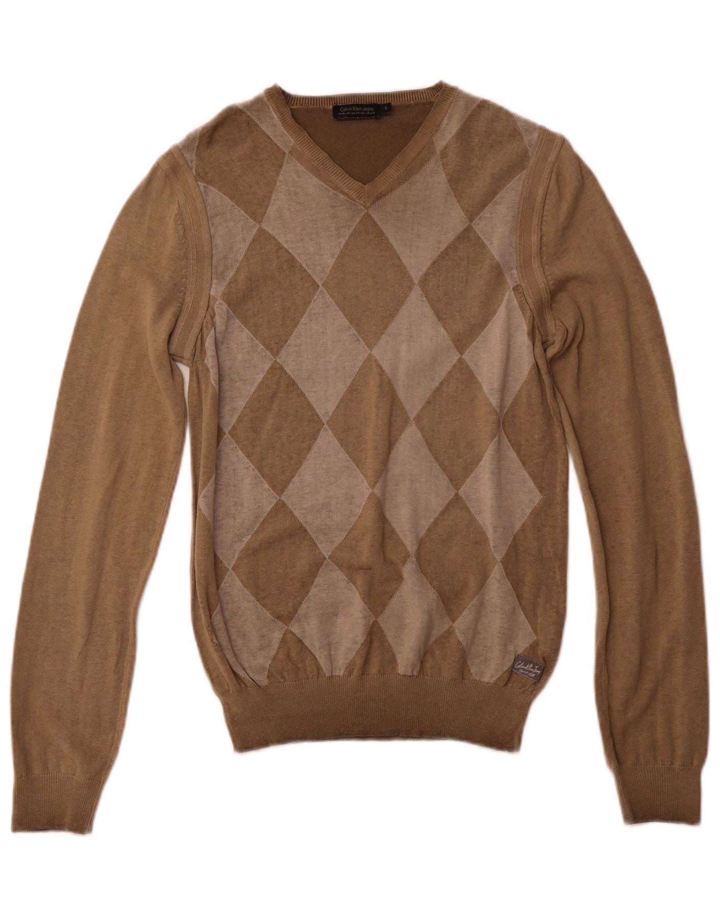 CALVIN KLEIN JEANS Suéter masculino com decote em V pequeno marrom Argyle/Diamante