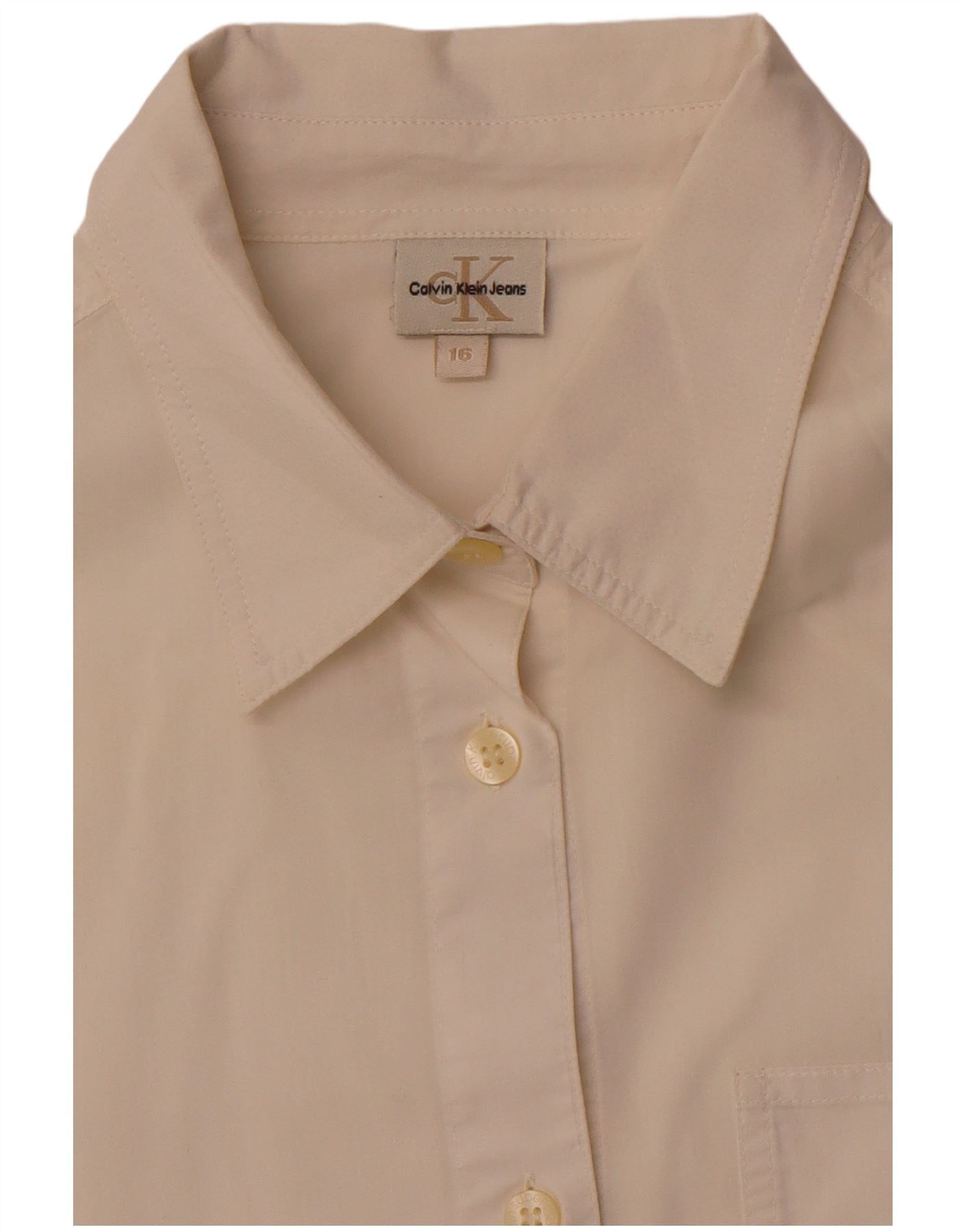Camisa feminina CALVIN KLEIN JEANS manga 3/4 UK 16 grande off white