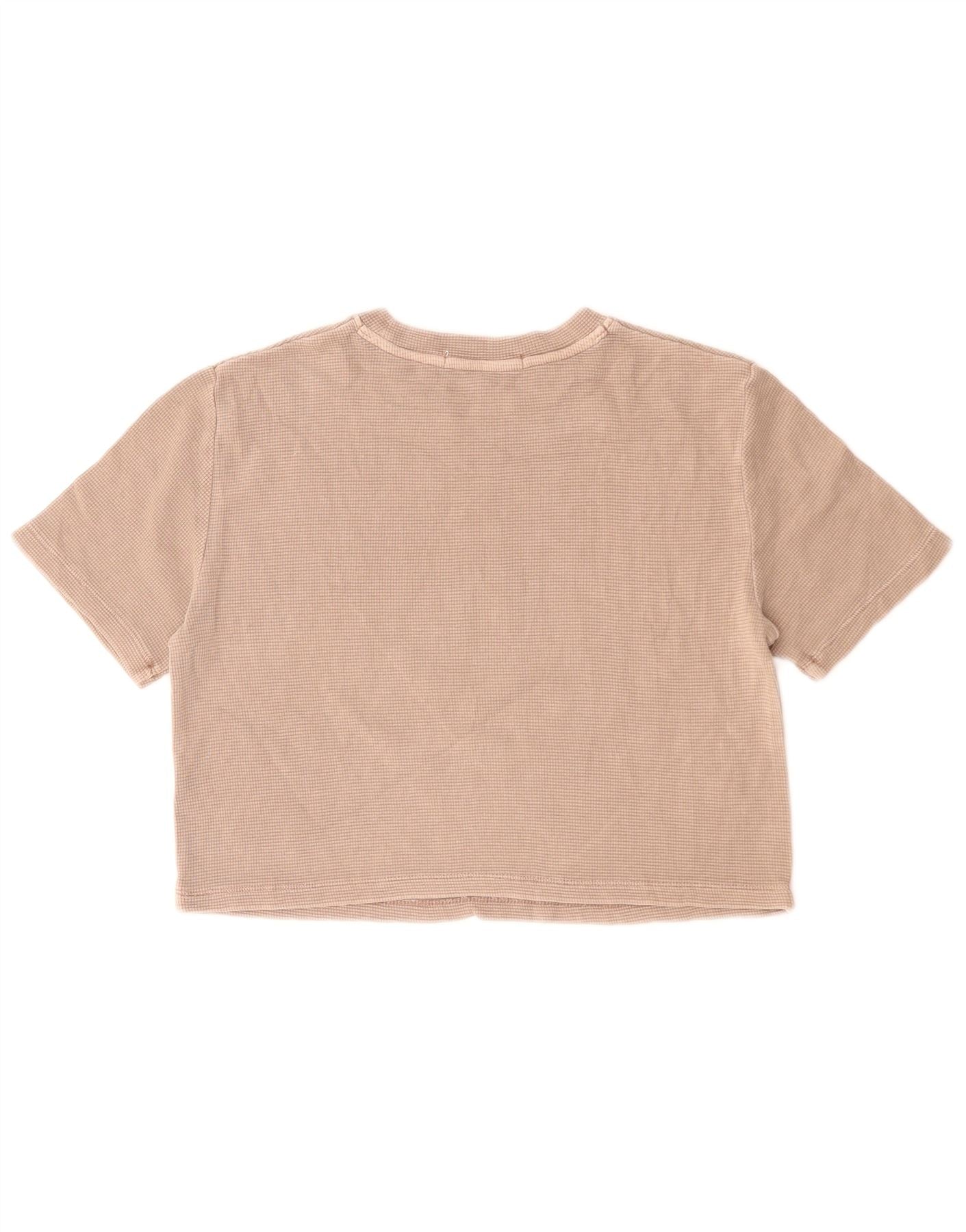 CALVIN KLEIN JEANS Camiseta feminina cropped Reino Unido 10 algodão bege pequeno