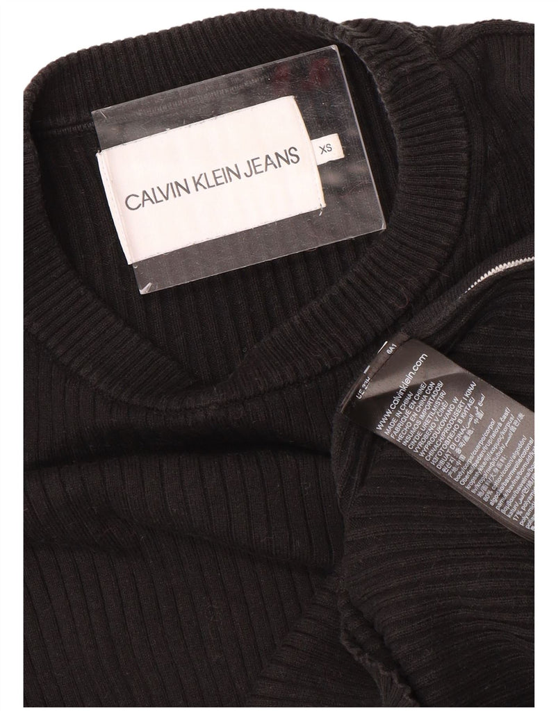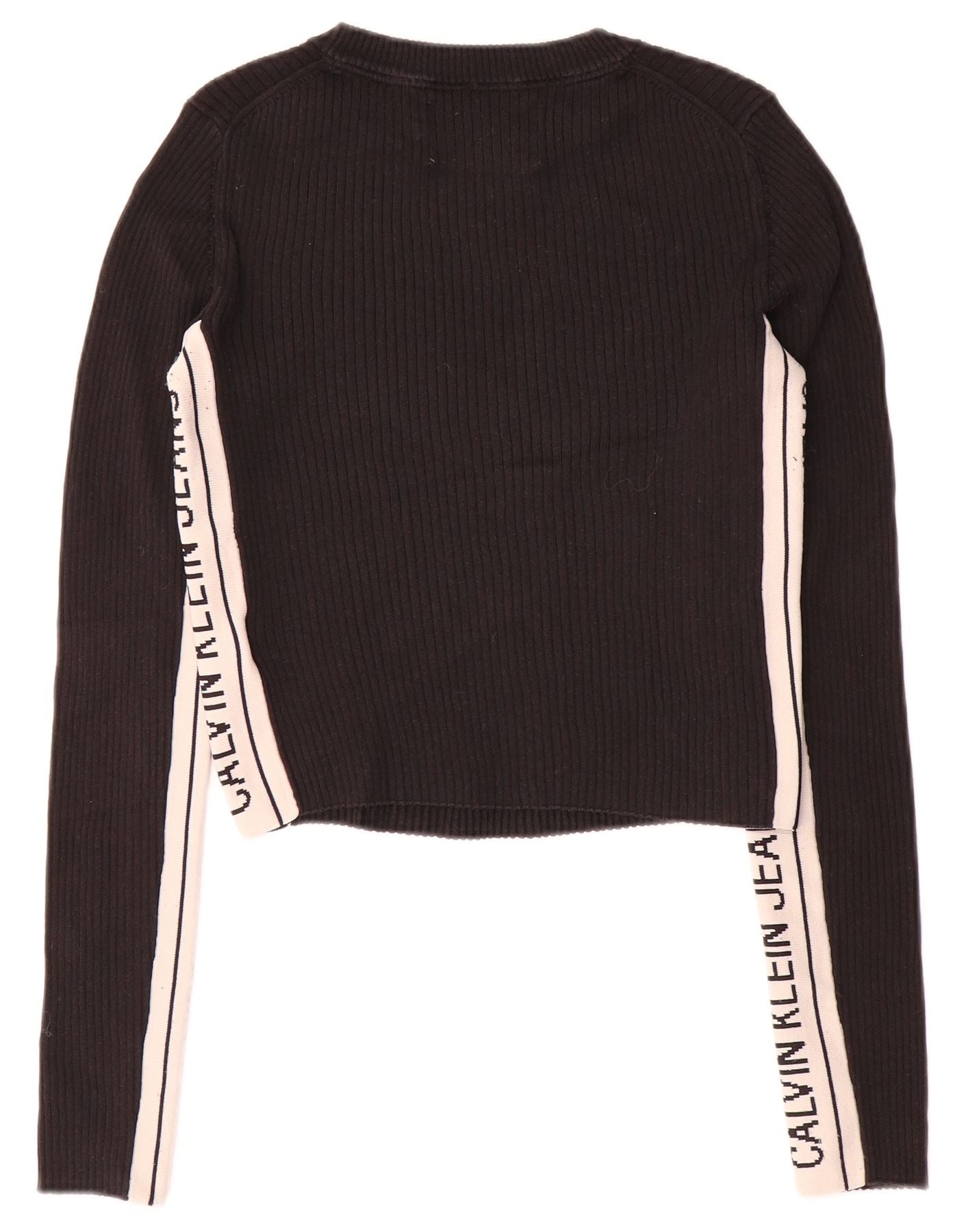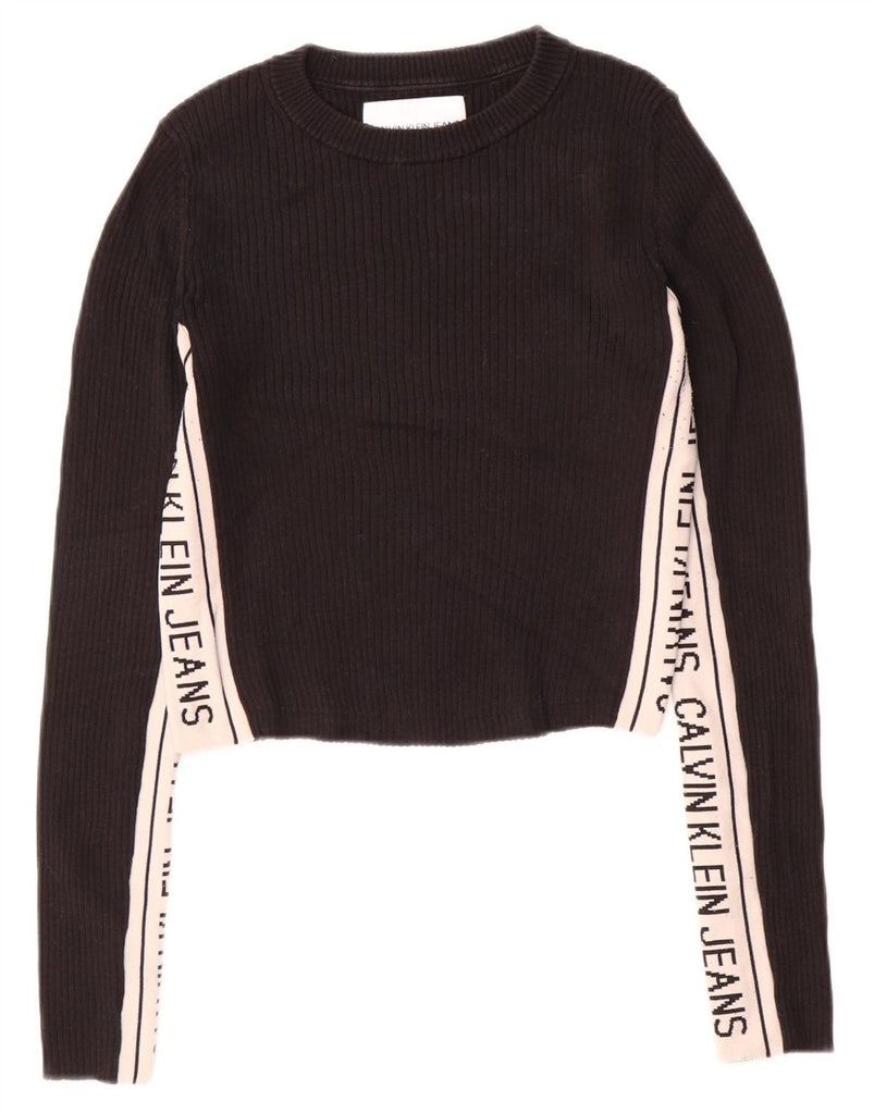 CALVIN KLEIN JEANS Top cropped feminino com estampa gráfica UK 6 XS preto bloco colorido
