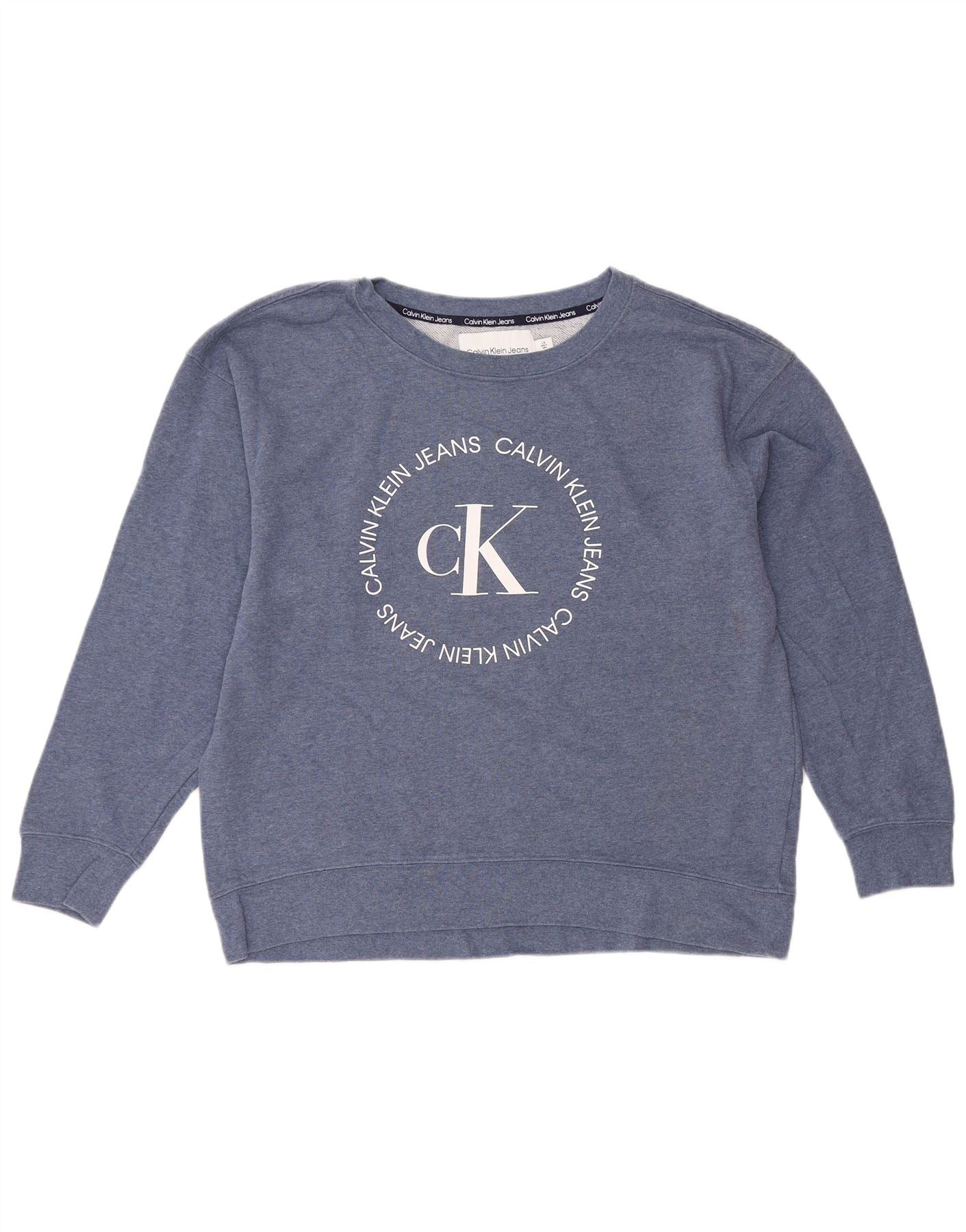 CALVIN KLEIN JEANS moletom gráfico feminino jumper UK 16 grande azul