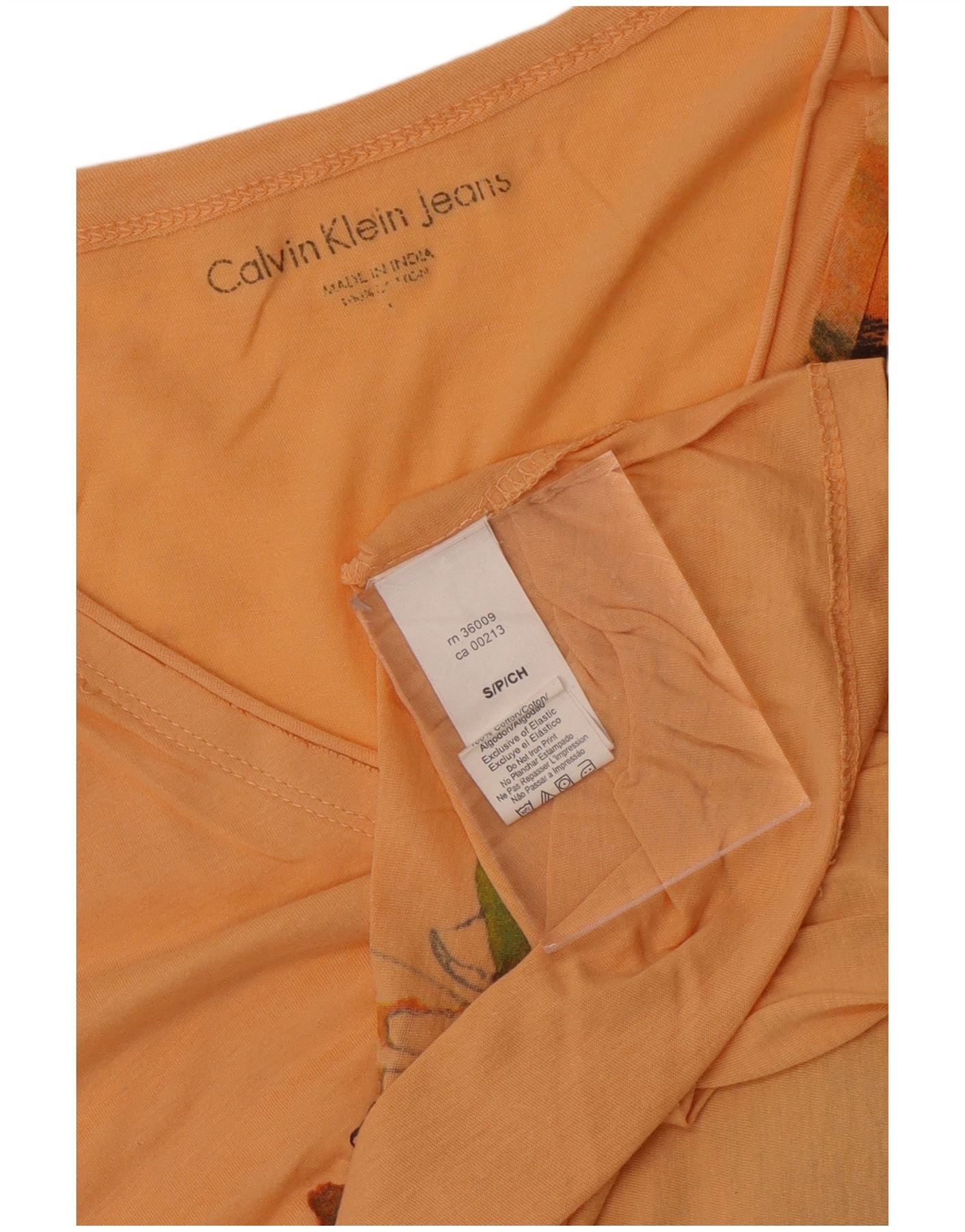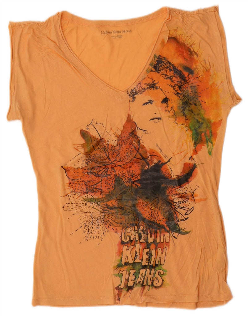 Camiseta feminina estampada CALVIN KLEIN JEANS Reino Unido 10 algodão laranja pequeno