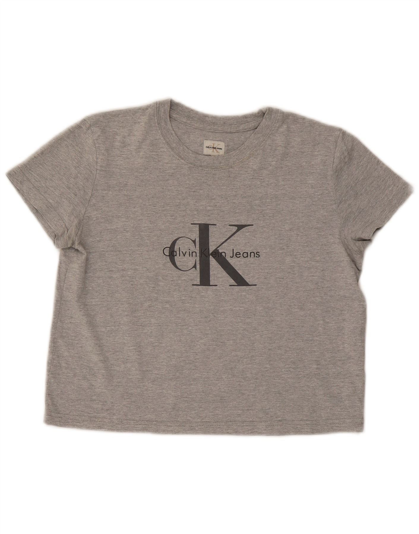 CALVIN KLEIN JEANS Womens Graphic T-Shirt Top UK 12 Medium Grey Cotton