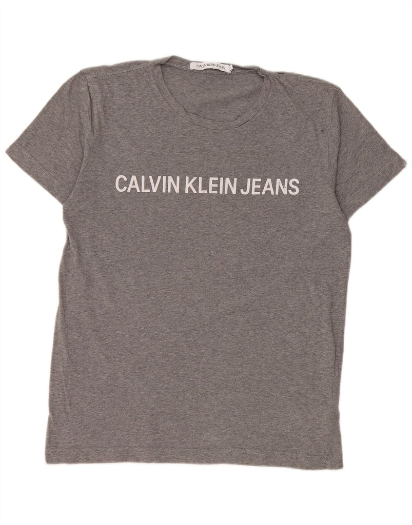 Camiseta feminina CALVIN KLEIN JEANS com estampa gráfica UK 14 algodão cinza médio