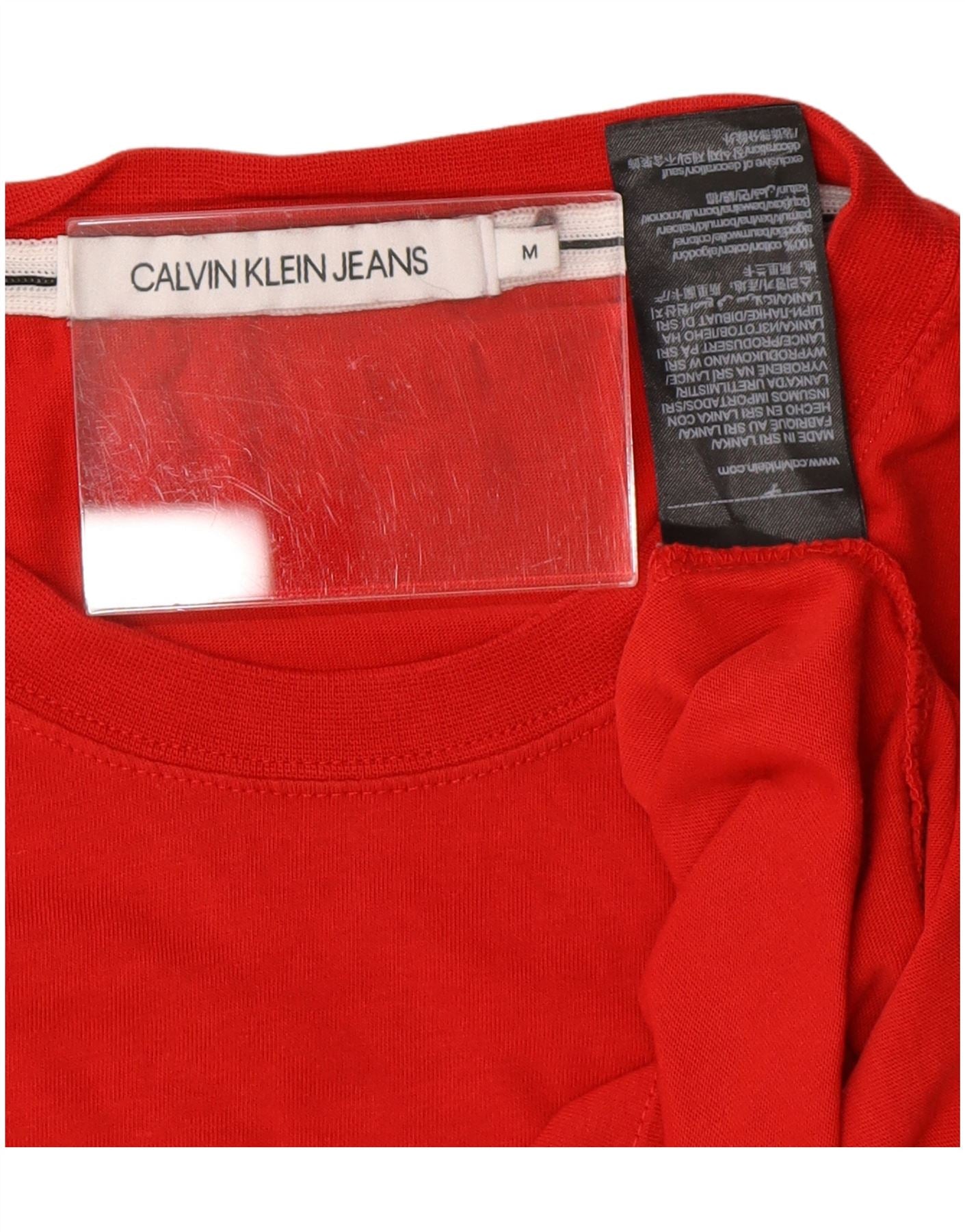 Camiseta feminina CALVIN KLEIN JEANS com estampa gráfica UK 14 algodão vermelho médio