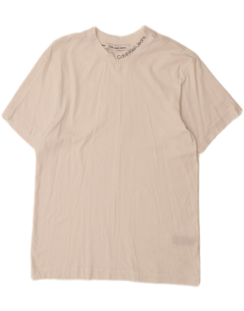 Camiseta feminina CALVIN KLEIN JEANS com estampa gráfica UK 6 XS algodão branco