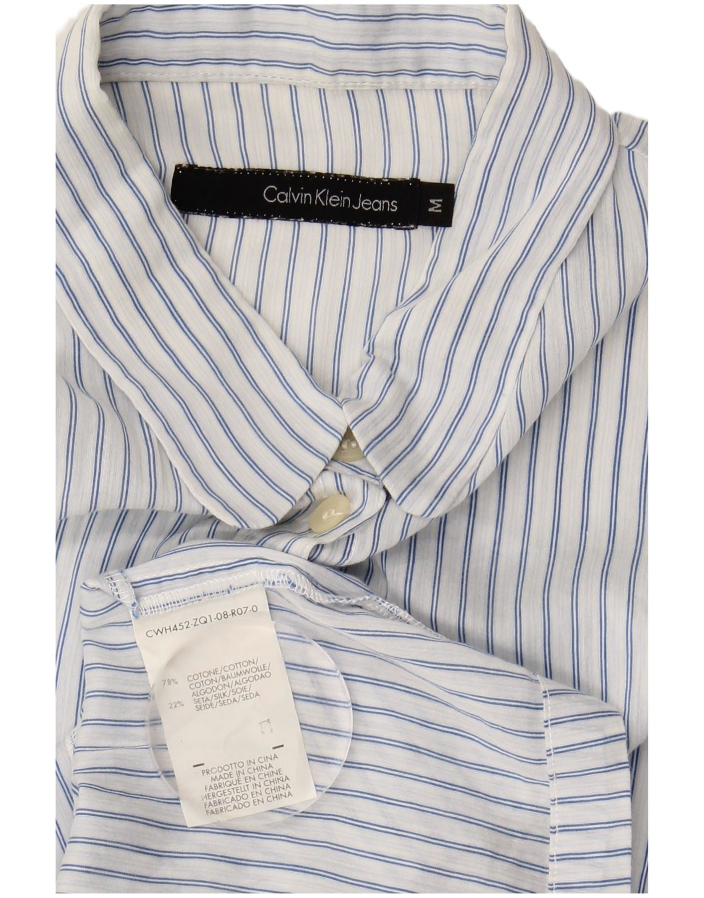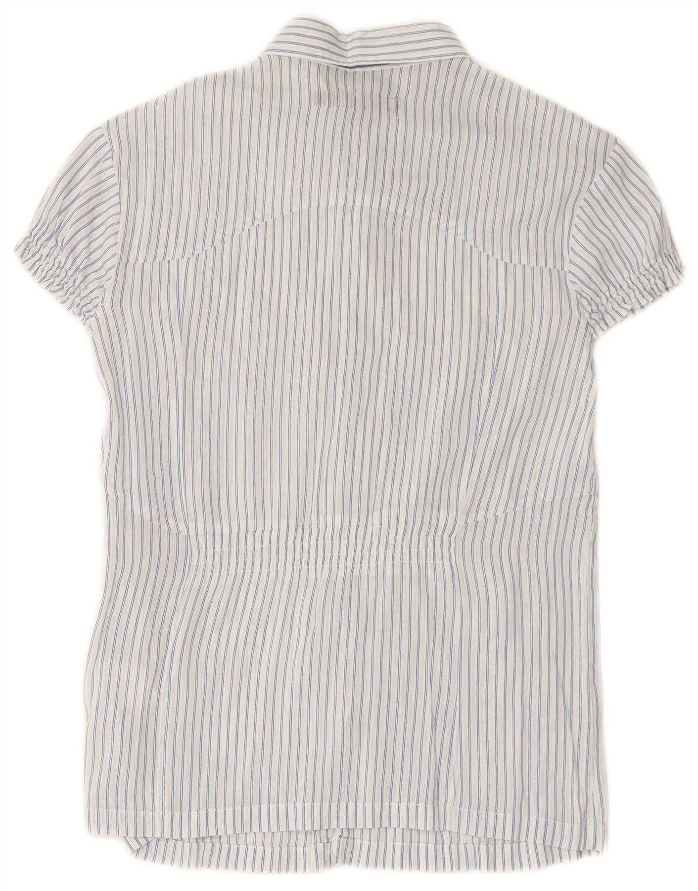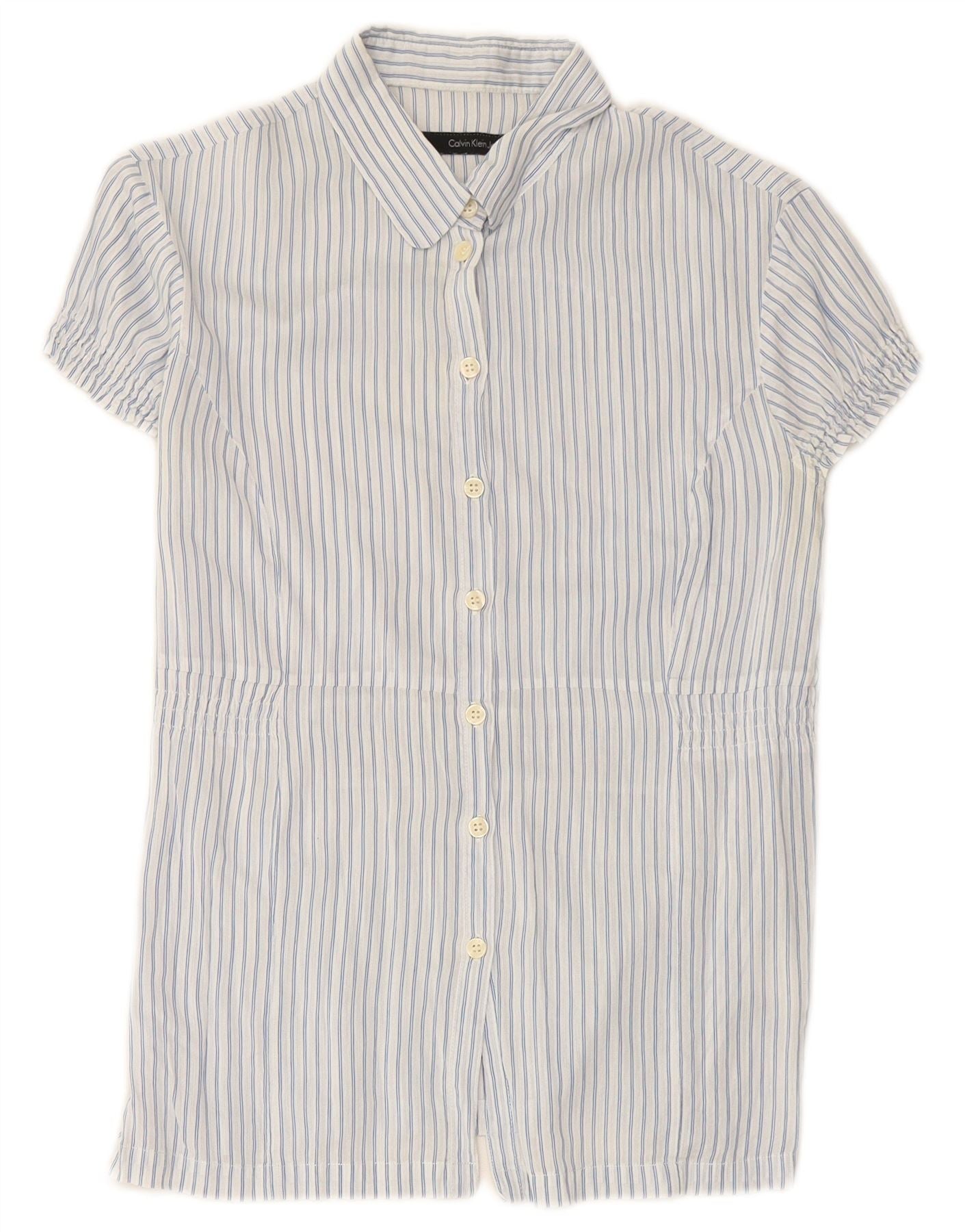 CALVIN KLEIN JEANS Camisa feminina de manga curta UK 12 risca de giz azul médio
