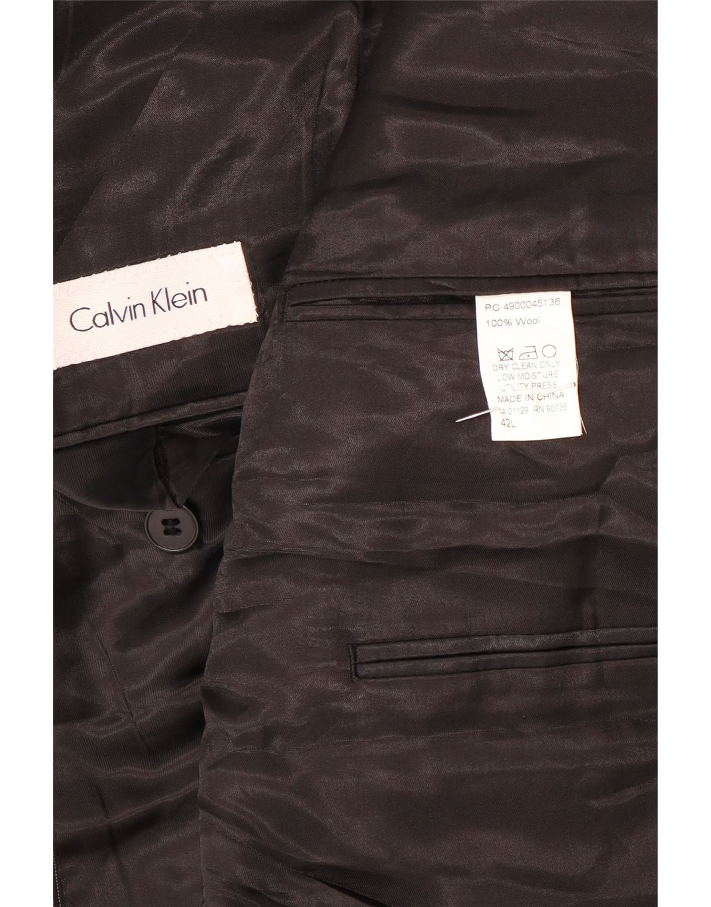 CALVIN KLEIN Jaqueta blazer masculina de 2 botões Reino Unido 42 XL lã listrada preta