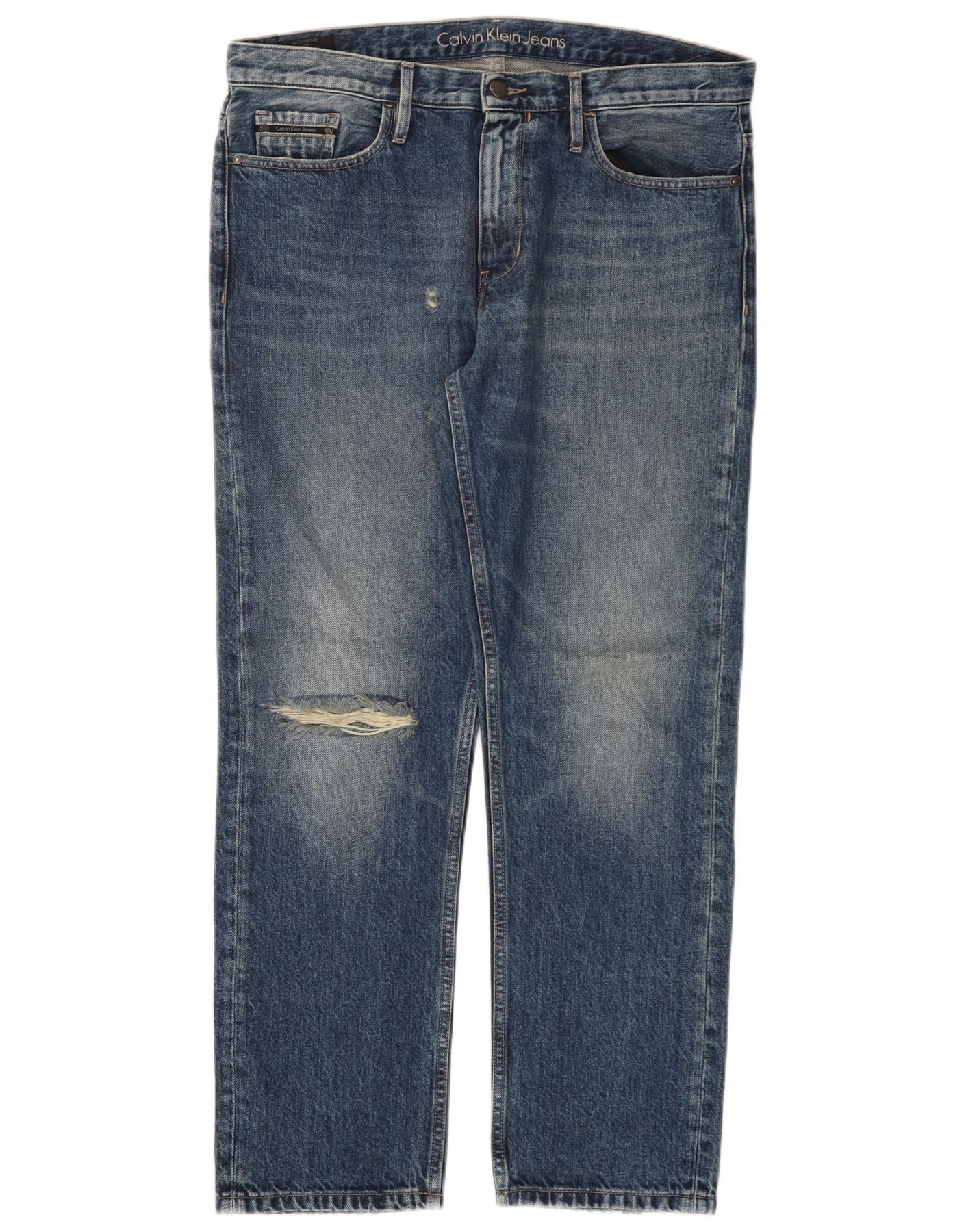 CALVIN KLEIN Masculino Boyfriend Distressed Straight Jeans W30 L30 Algodão Azul