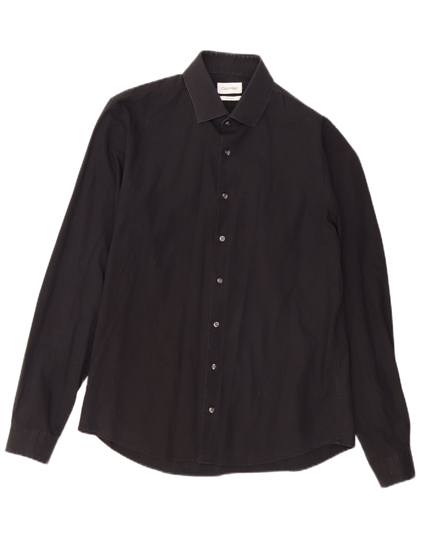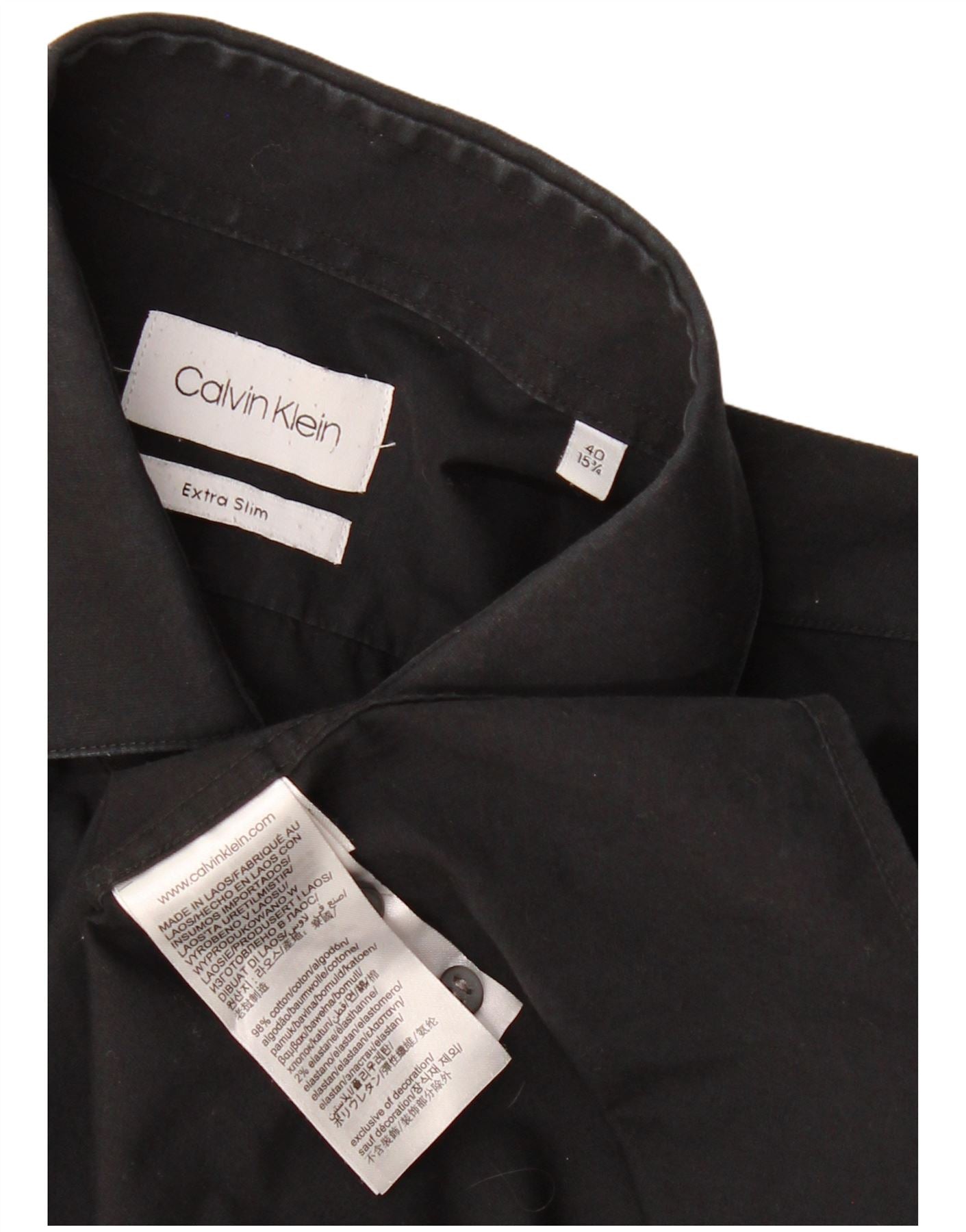 CALVIN KLEIN Camisa masculina extra slim fit tamanho 40 15 3/4 algodão preto médio