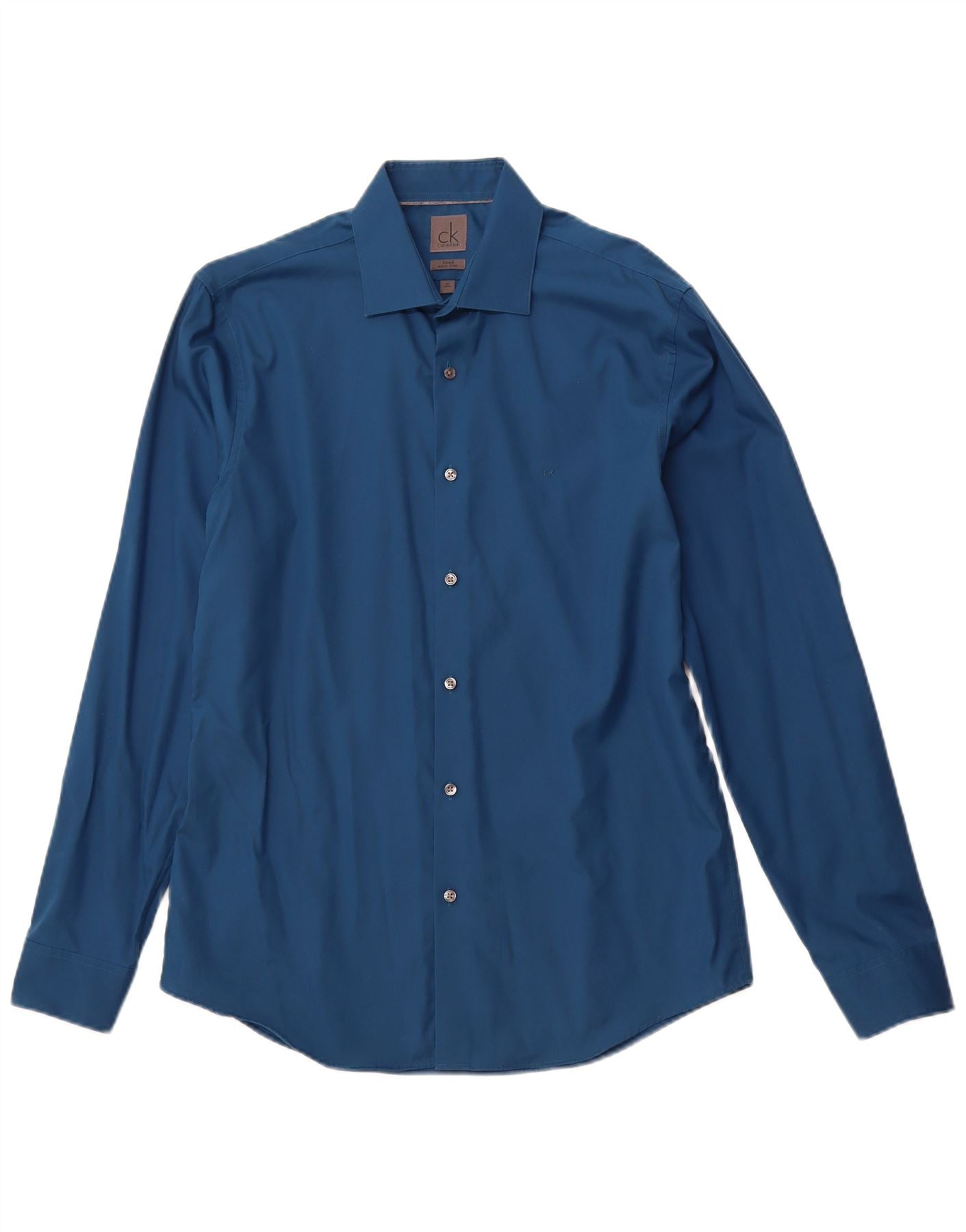 CALVIN KLEIN Camisa masculina justa tamanho 40 15 3/4 azul médio