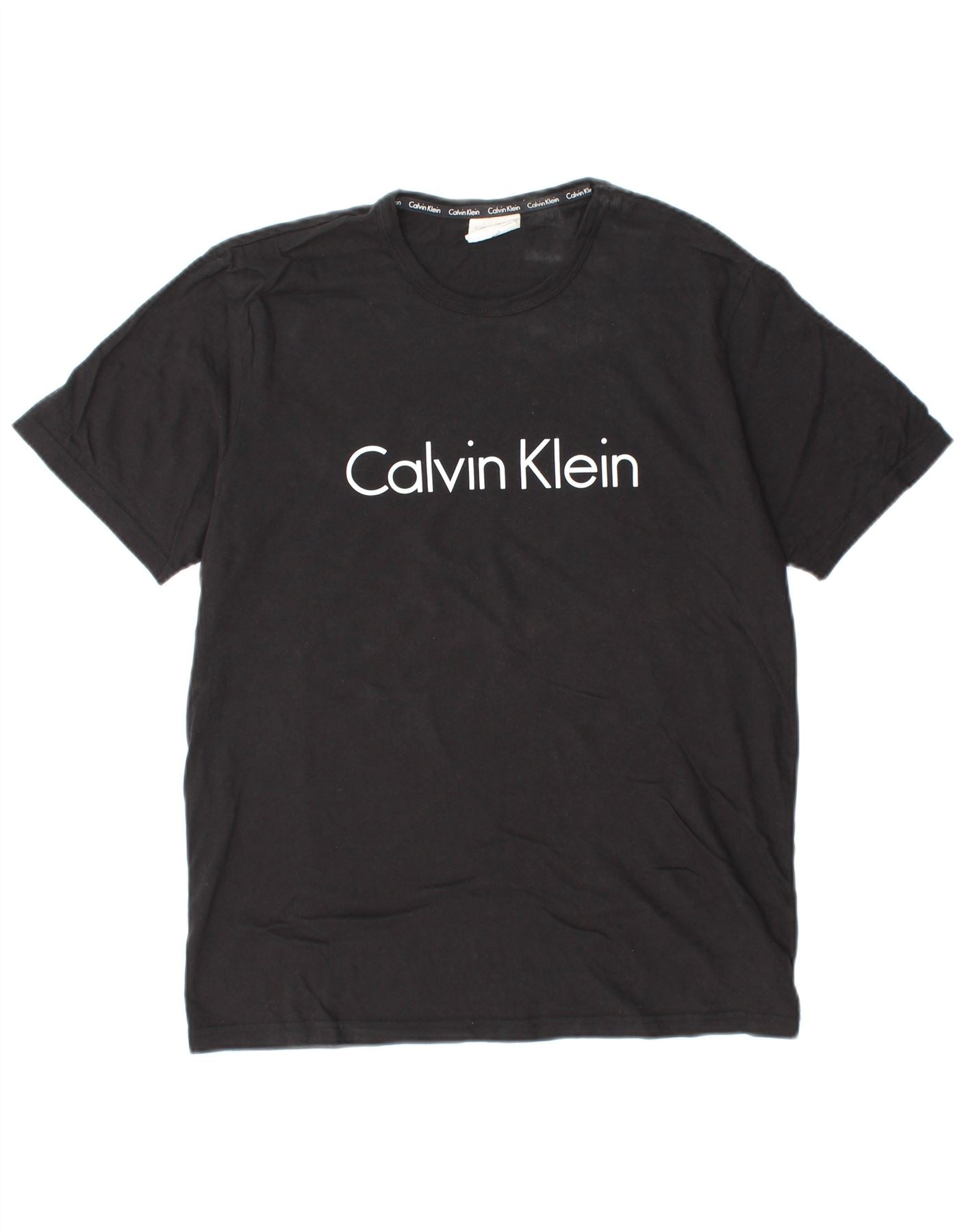 CALVIN KLEIN Camiseta masculina gráfica Top médio algodão preto