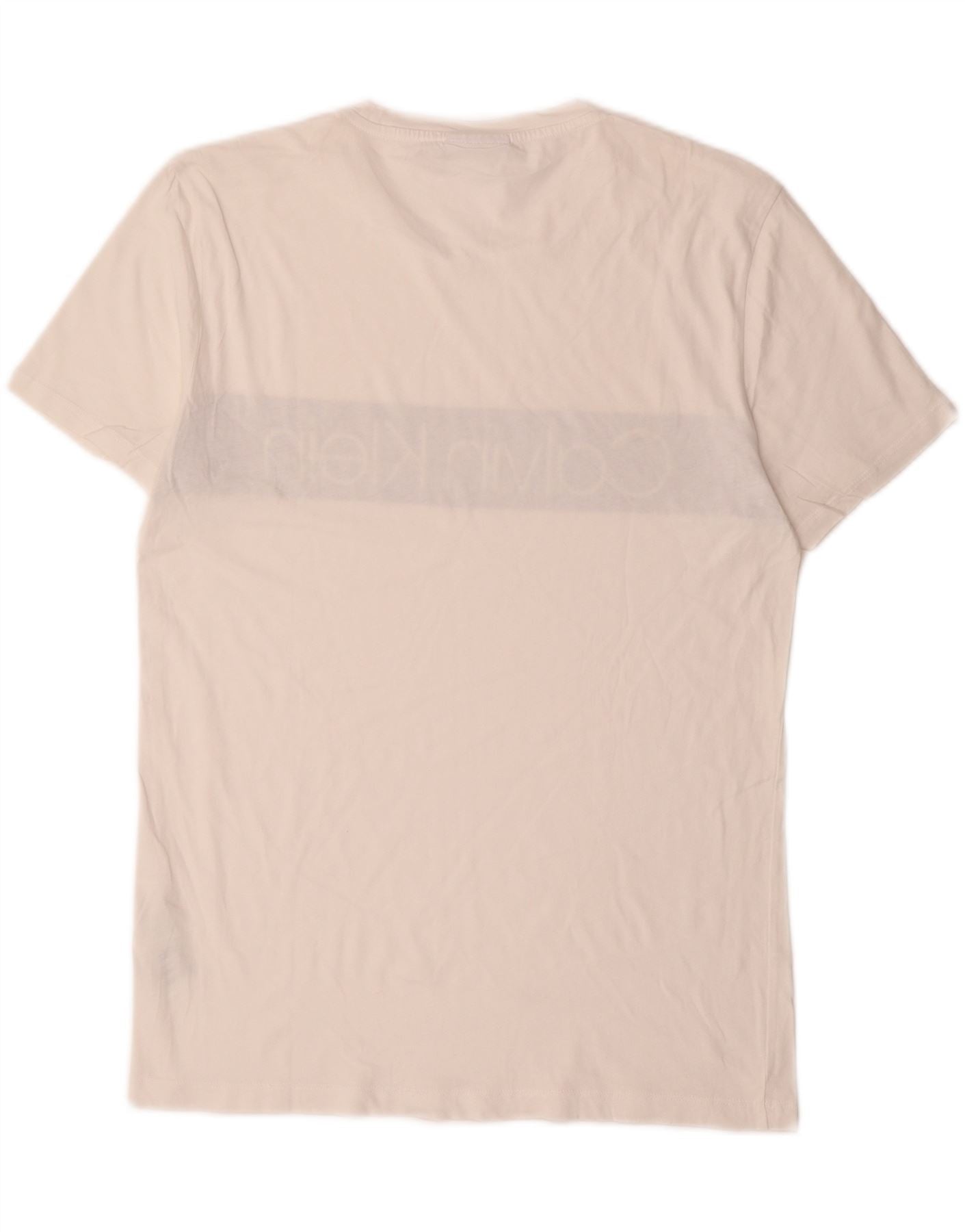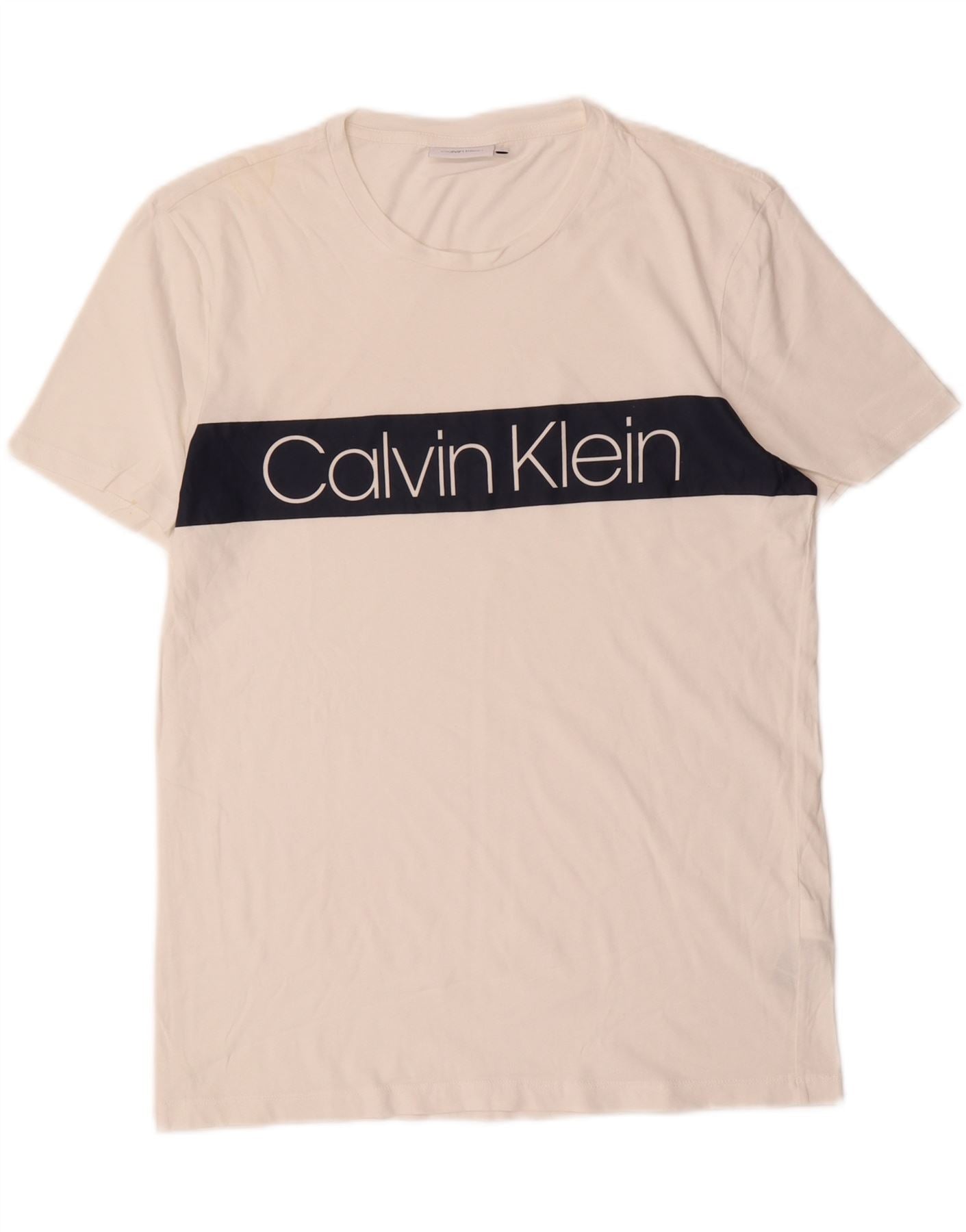 CALVIN KLEIN Camiseta masculina gráfica Top médio branco algodão colorblock